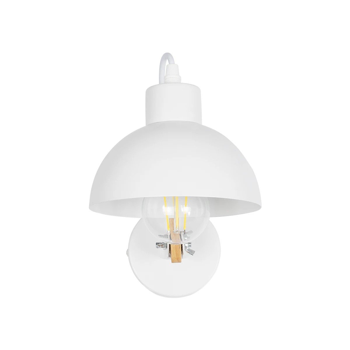 GloboStar® GRANT 00903 Μοντέρνο Φωτιστικό Τοίχου Απλίκα Μονόφωτο Λευκό με Ξύλινο Βραχίονα Μεταλλικό Φ15 x Y12cm