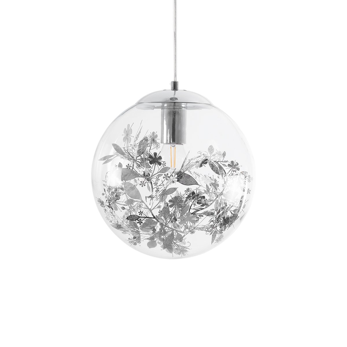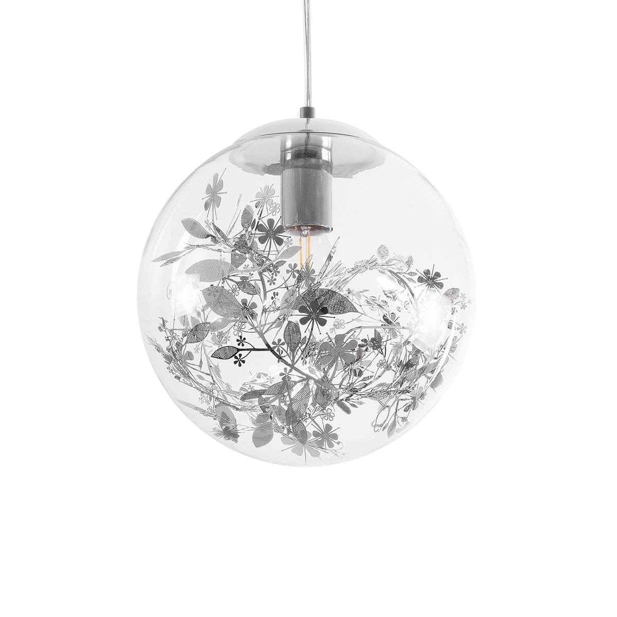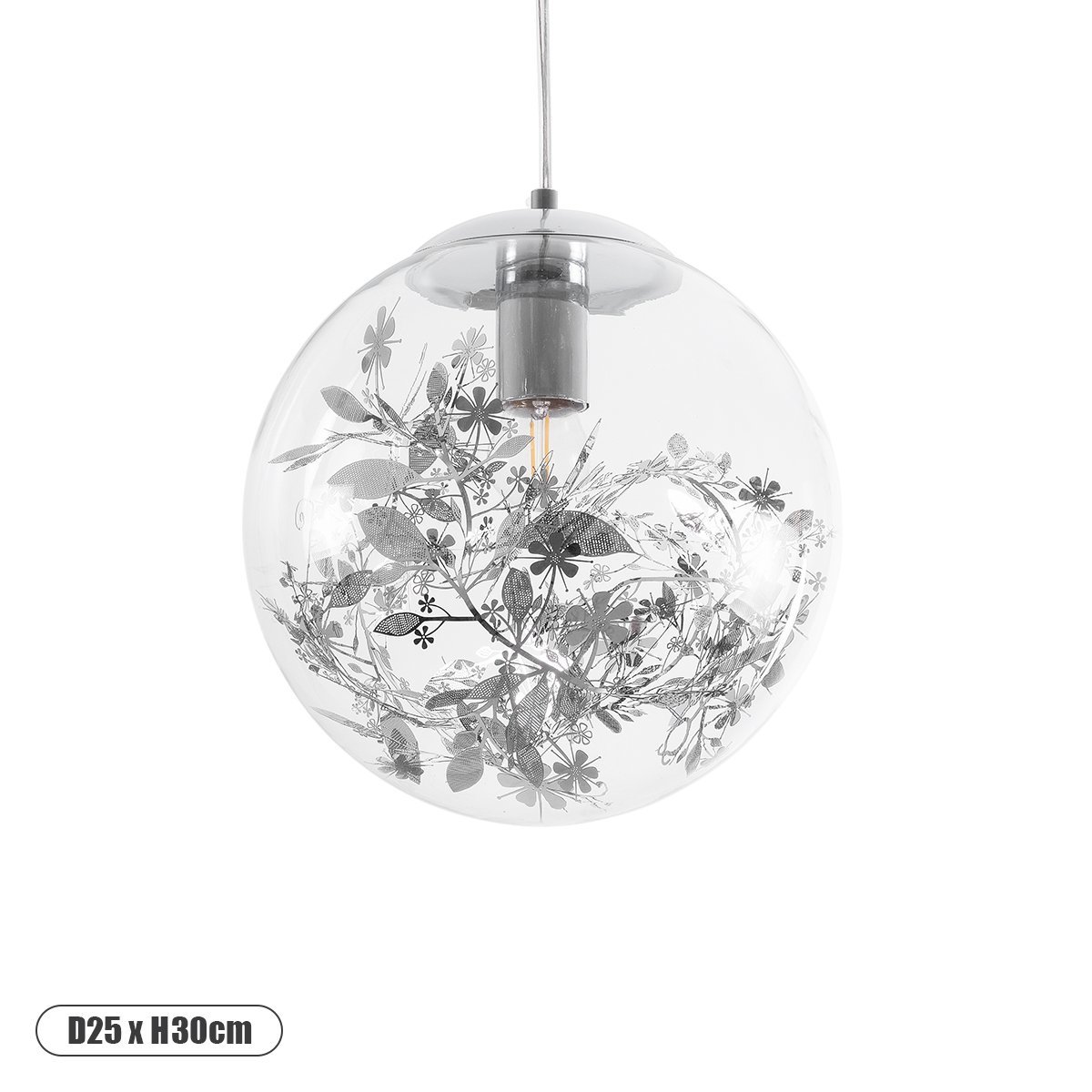 GLOBOSTAR® HARPER 01510 Μοντέρνο Κρεμαστό Φωτιστικό Οροφής με Ντουί 1 x E27 AC 220-240V IP20 – Διάφανο & Ασημί – Μ25 x Π25 x Υ30cm