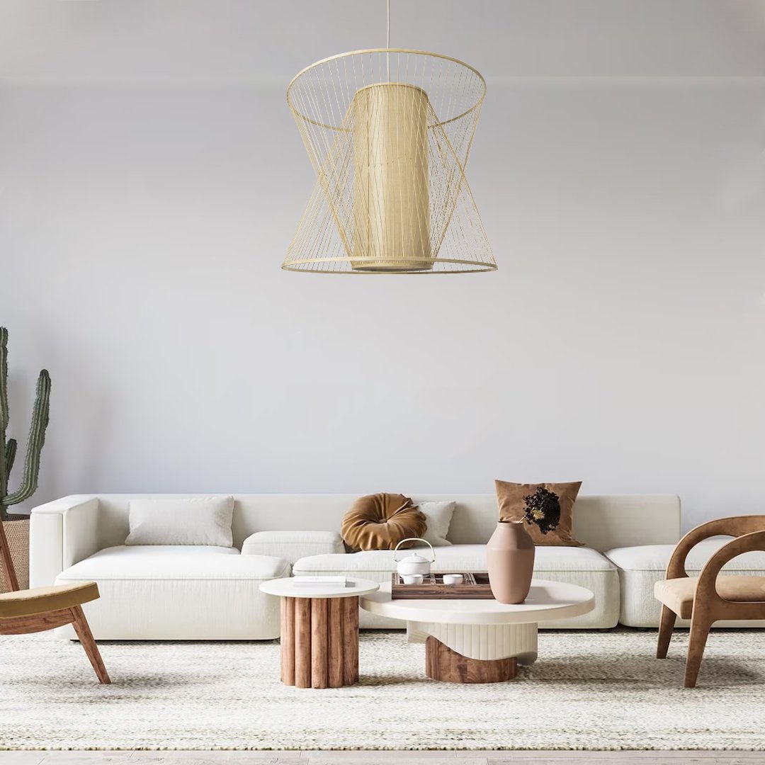 GLOBOSTAR® HIBISCUS 01926 Boho Κρεμαστό Φωτιστικό Οροφής με Ντουί 1 x E27 AC 220-240V IP20 – Μπεζ – Μ100 x Π100 x Υ90cm