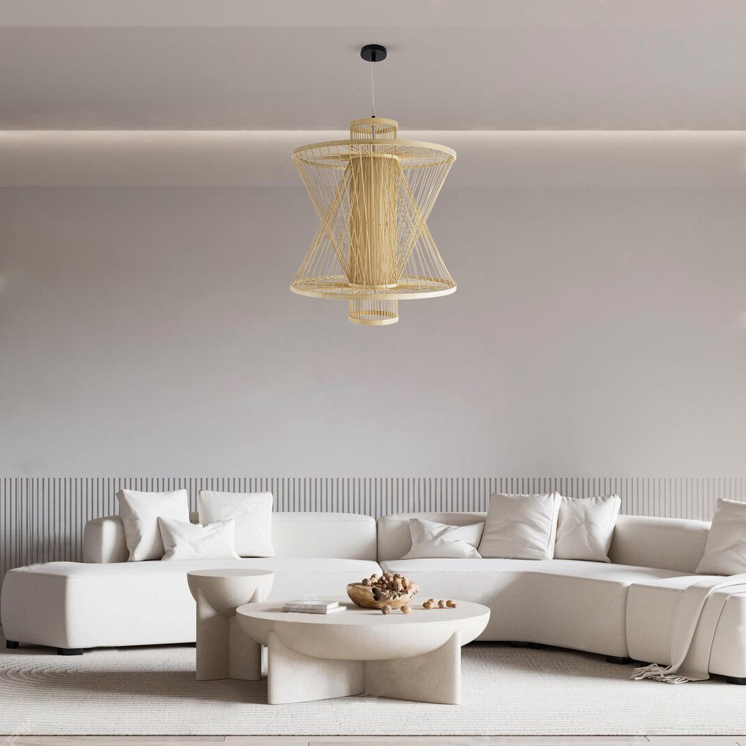 GLOBOSTAR® HIBISCUS 01931 Boho Κρεμαστό Φωτιστικό Οροφής με Ντουί 1 x E27 AC 220-240V IP20 – Μπεζ – Μ50 x Π50 x Υ60cm