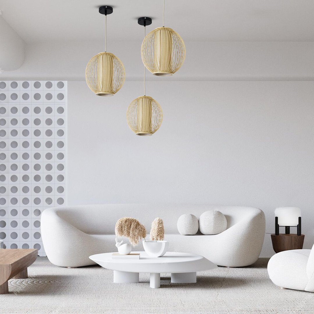 GLOBOSTAR® HIBISCUS 01934 Boho Κρεμαστό Φωτιστικό Οροφής με Ντουί 1 x E27 AC 220-240V IP20 – Μπεζ – Μ28 x Π28 x Υ28cm