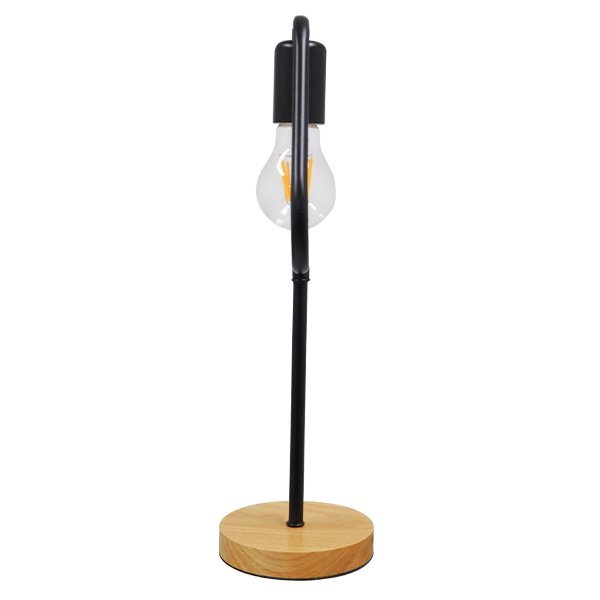 GloboStar® HONOR TRIANGLE 01436 Μοντέρνο Επιτραπέζιο Φωτιστικό Πορτατίφ Μονόφωτο Μαύρο Μεταλλικό με Ξύλινη Βάση Δρυς Μ20 x Π20 x Υ40cm