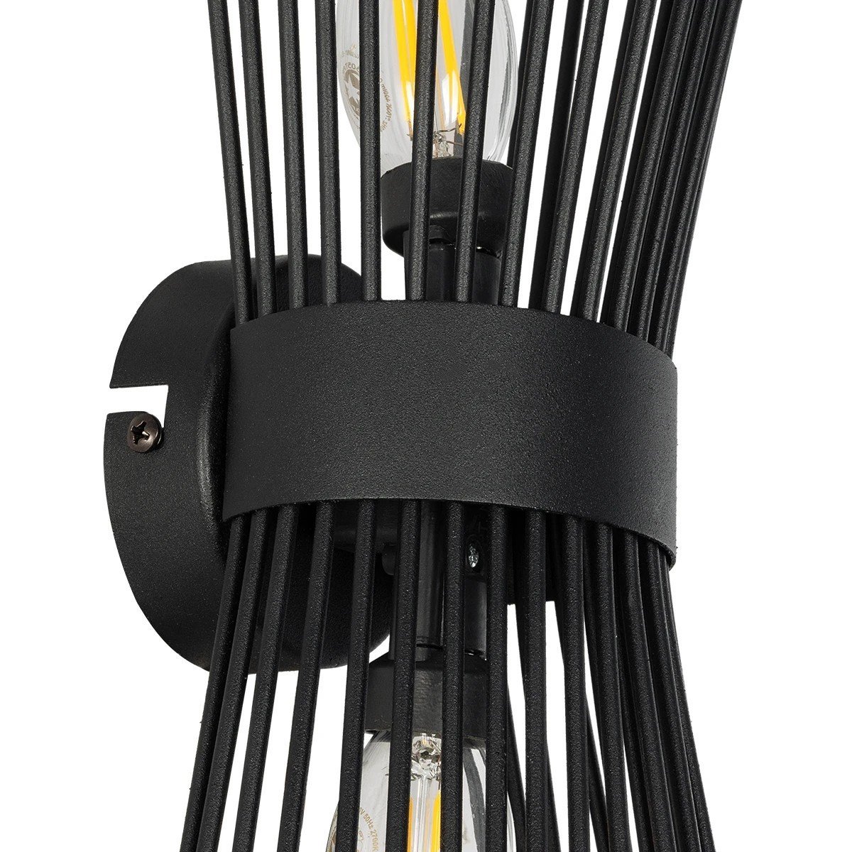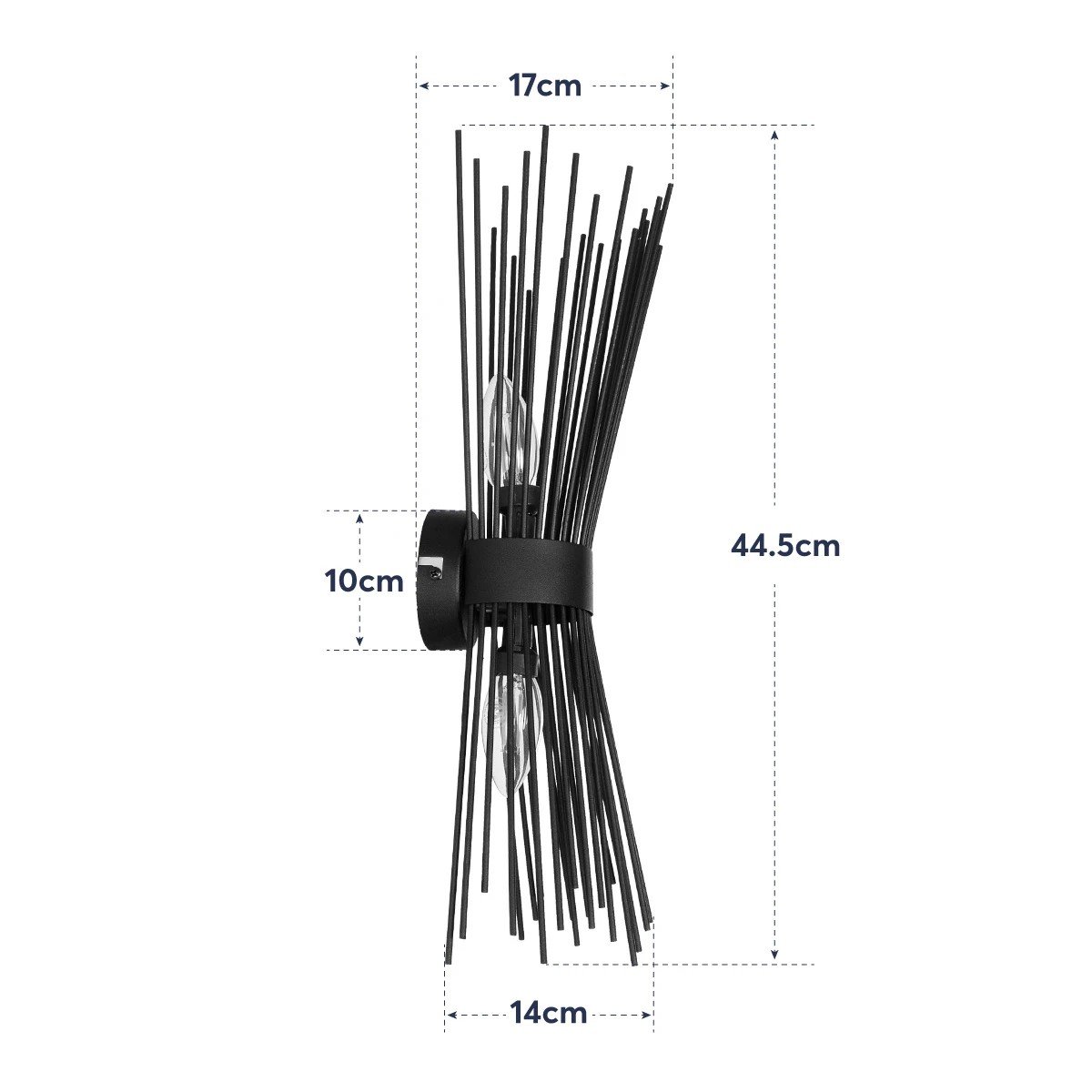 GLOBOSTAR® HORN 203-0043 Vintage Φωτιστικό Τοίχου – Απλίκα με Ντουί 2 x E14 AC 220-240V IP20 – Μαύρο – Μ14 x Π17 x Υ44.5cm