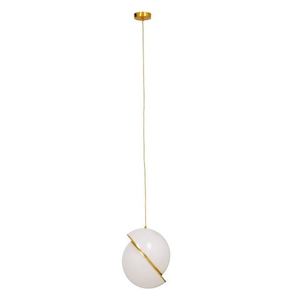 GloboStar® HUDSON 01555 Μοντέρνο Κρεμαστό Φωτιστικό Οροφής Μονόφωτο Λευκό με Χρυσό Φ30 x Υ34cm