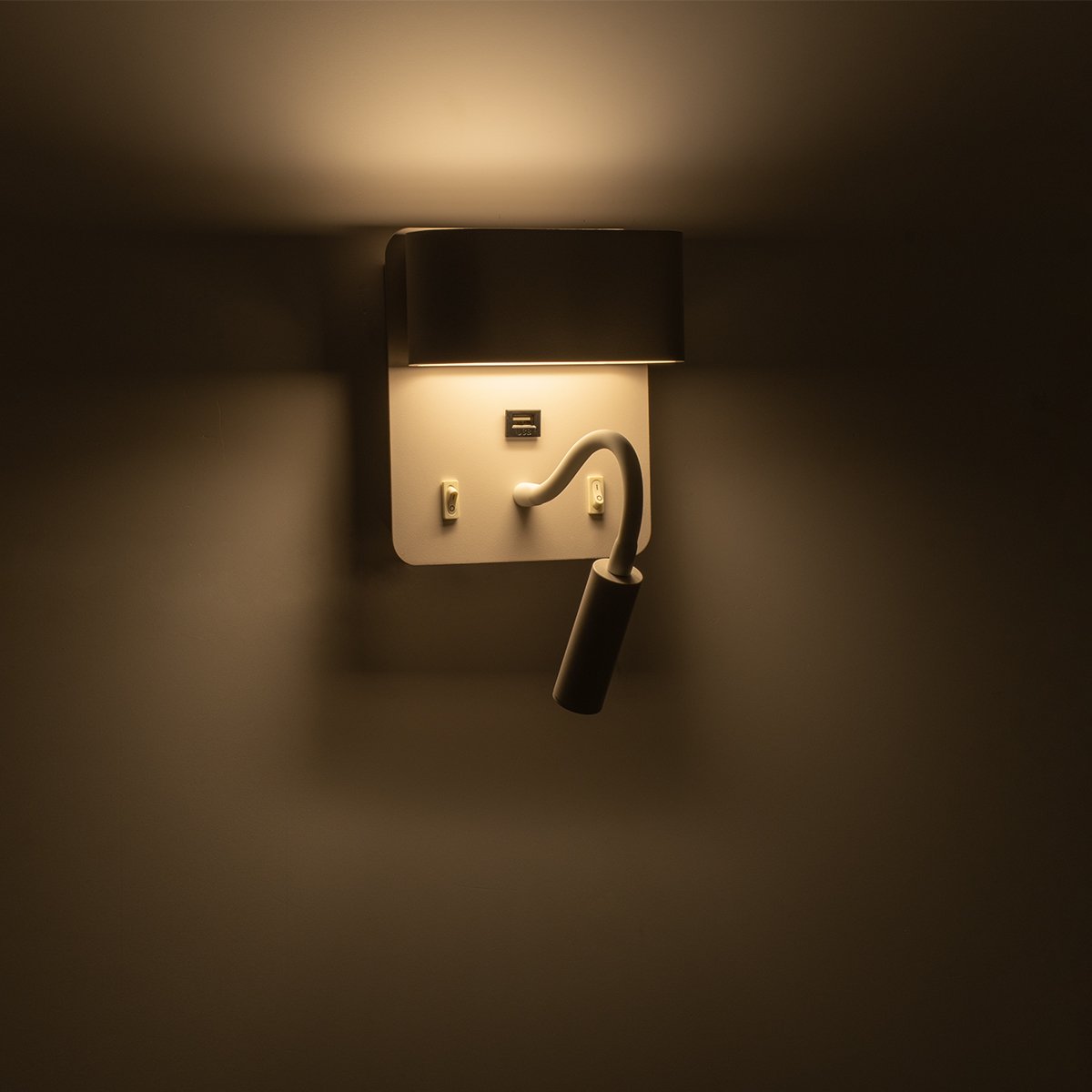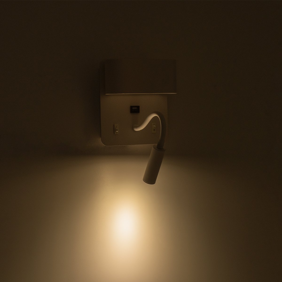 GLOBOSTAR® IBIS 61368 Μοντέρνο Φωτιστικό Τοίχου – Απλίκα Ξενοδοχείου Reading Light με Φορτιστή USB 3A LED 10W 1100lm 36° & 360° AC 220-240V IP20 Φυσικό Λευκό 4500K – Bridgelux COB Chip & TÜV SÜD Driver – Λευκό Ματ – Μ10 x Π6.1 x Υ18cm – 3 Χρόνια Εγγύηση