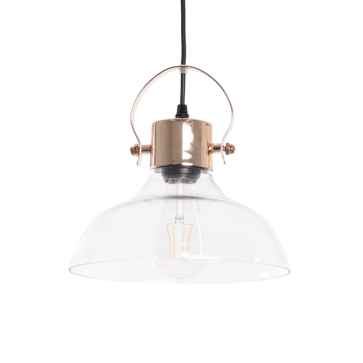 GLOBOSTAR® JAVER 00933 Vintage Κρεμαστό Φωτιστικό Οροφής με Ντουί 1 x E27 AC 220-240V IP20 – Διάφανο & Ροζ Χρυσό – Μ24.5 x Π24.5 x Υ25cm