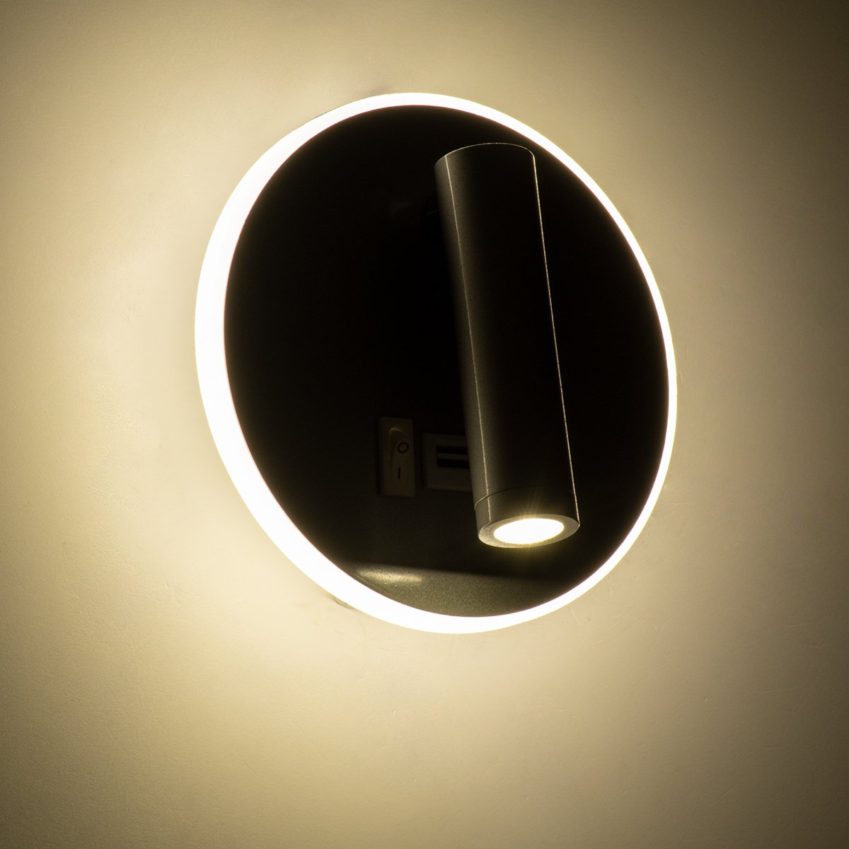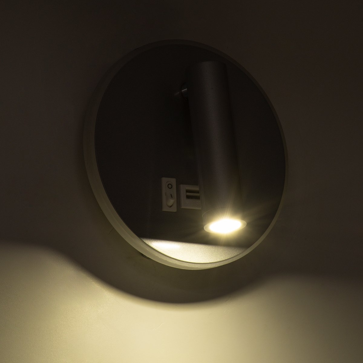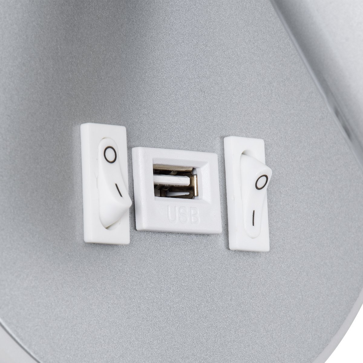 GLOBOSTAR® JERSEY 61103 Μοντέρνο Φωτιστικό Τοίχου – Απλίκα Ξενοδοχείου Reading Light με Φορτιστή USB 3A LED 10W 1380lm 36° & 360° AC 220-240V IP20 Φυσικό Λευκό 4500K – Bridgelux SMD Chip & TÜV SÜD Driver – Νίκελ Βούρτσας – Μ14.5 x Π14.5 x Υ6cm – 3 Χρόνια Εγγύηση