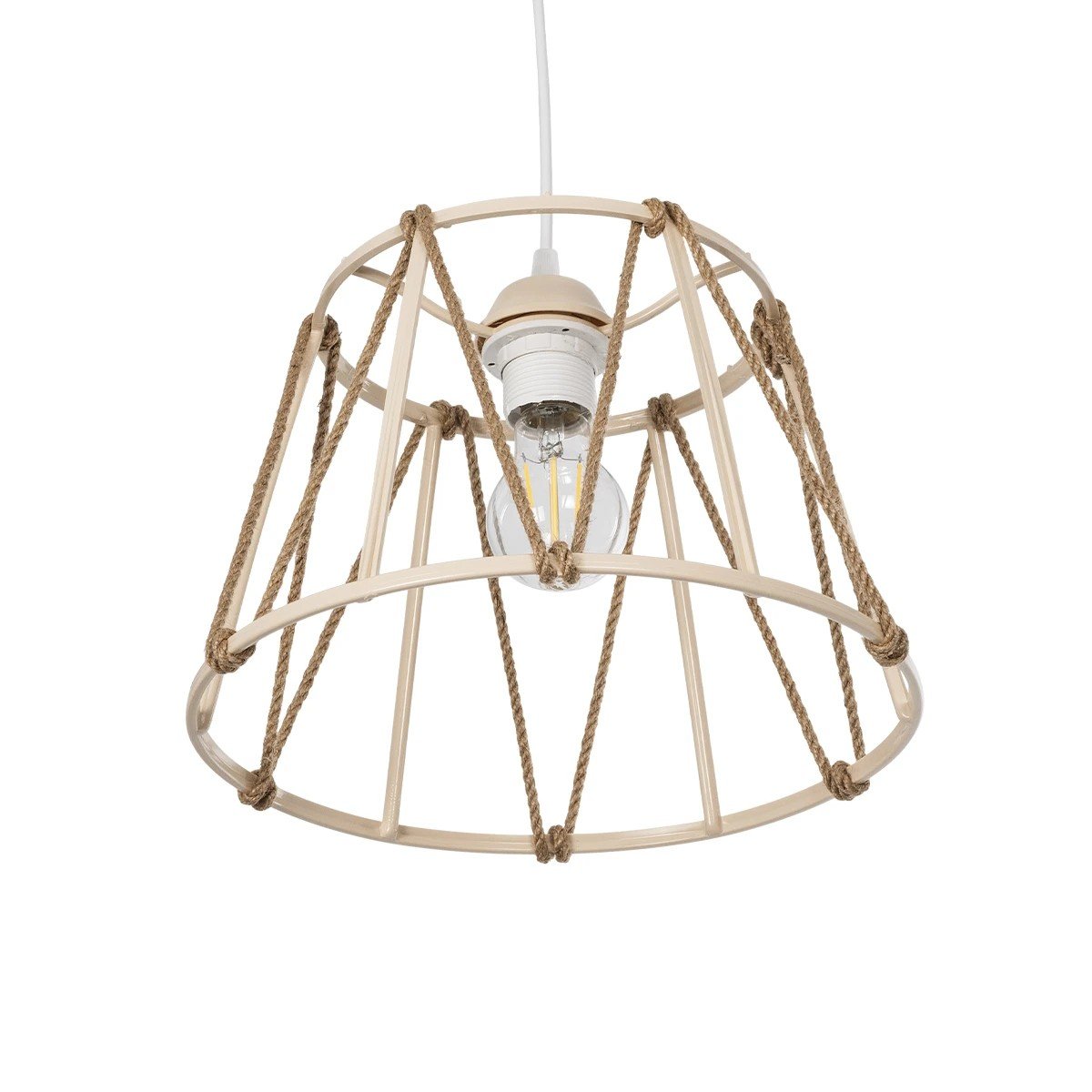 GLOBOSTAR® JUTE 203-0092 Μοντέρνο Κρεμαστό Φωτιστικό Οροφής με Ντουί 1 x E27 AC 220-240V IP20 – Μπεζ – Μ30 x Π30 x Υ23cm