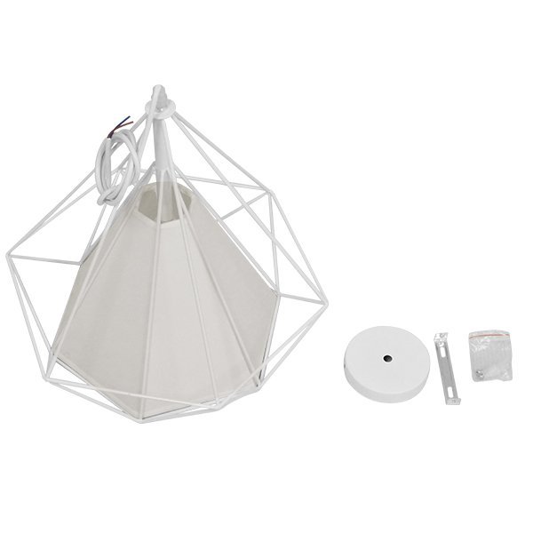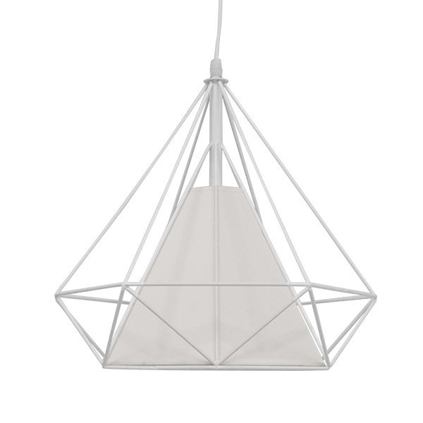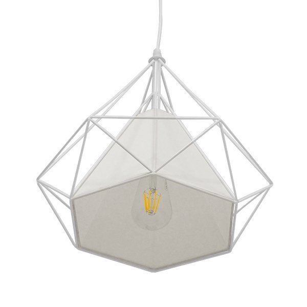 GloboStar® KAIRI 01619 Μοντέρνο Industrial Κρεμαστό Φωτιστικό Οροφής Μονόφωτο Λευκό με Ύφασμα Μεταλλικό Πλέγμα Φ38 x Υ39cm