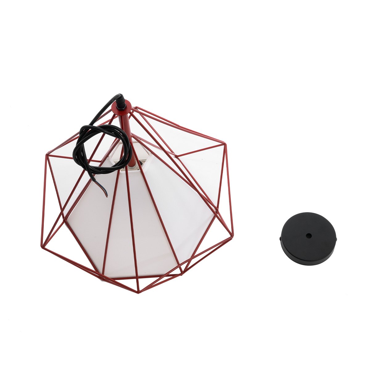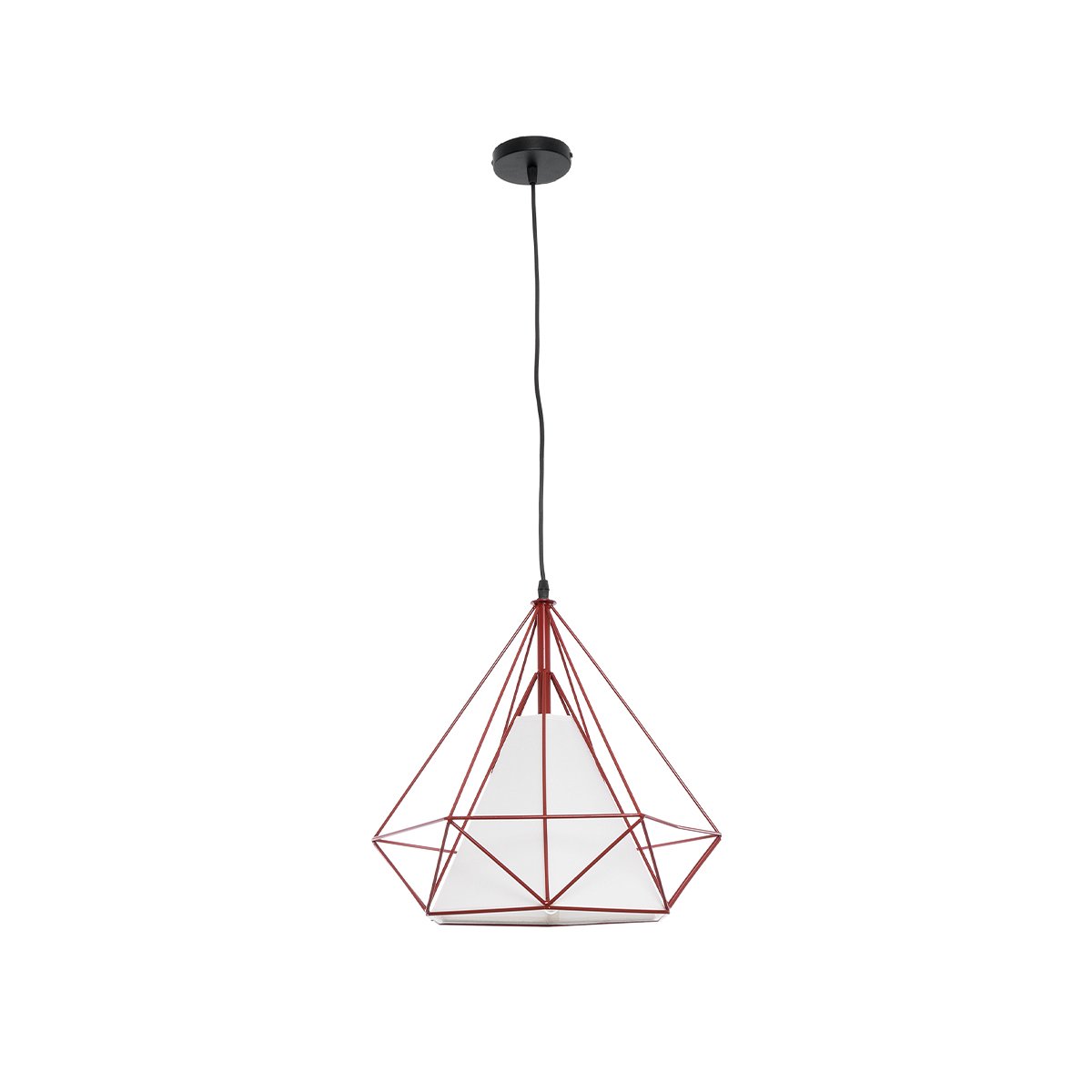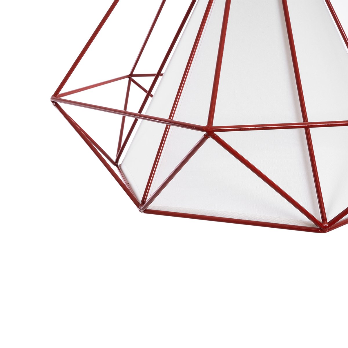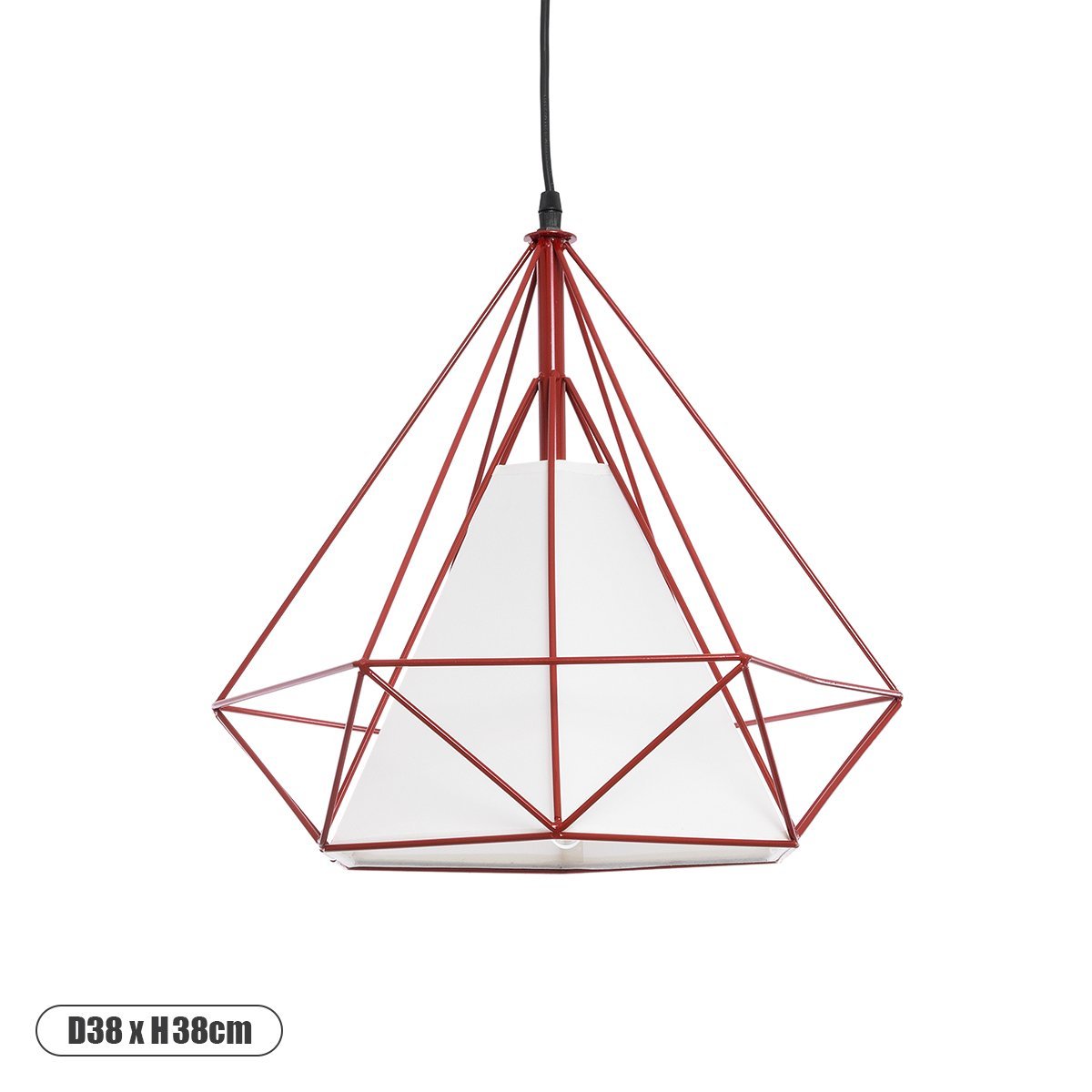 GloboStar® KAIRI 01620 Μοντέρνο Industrial Κρεμαστό Φωτιστικό Οροφής Μονόφωτο Κόκκινο με Άσπρο Ύφασμα Μεταλλικό Πλέγμα Φ38 x Υ39cm