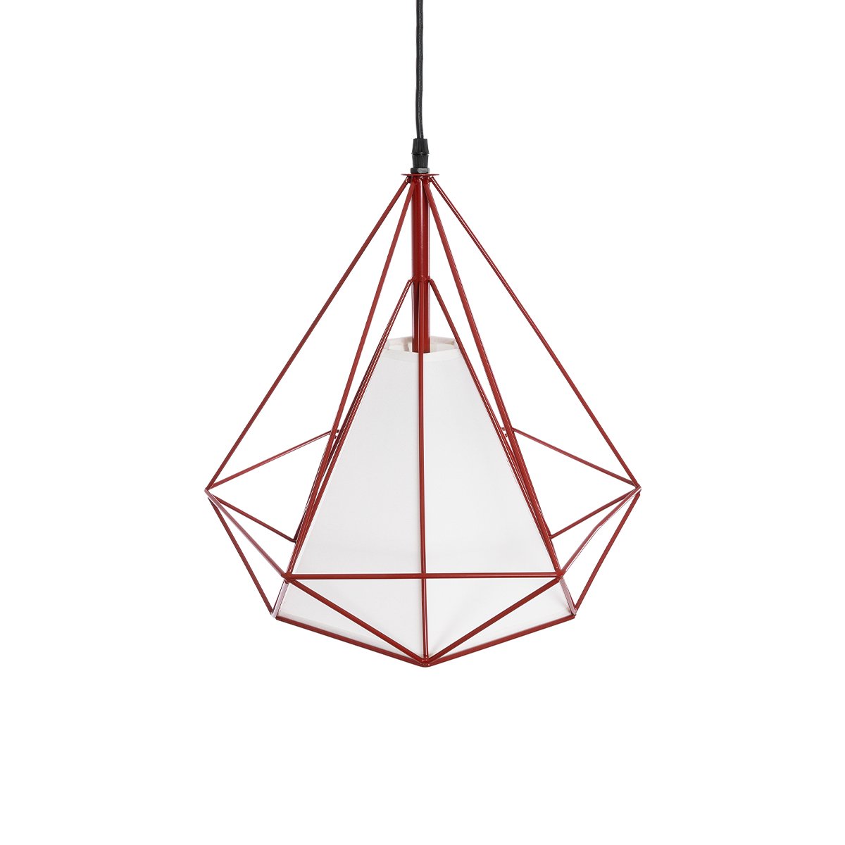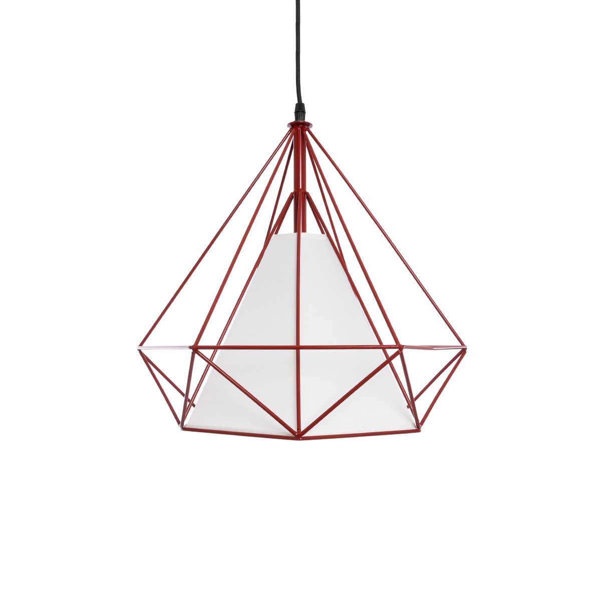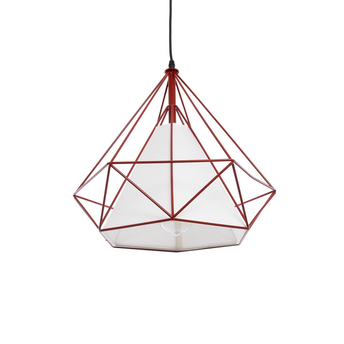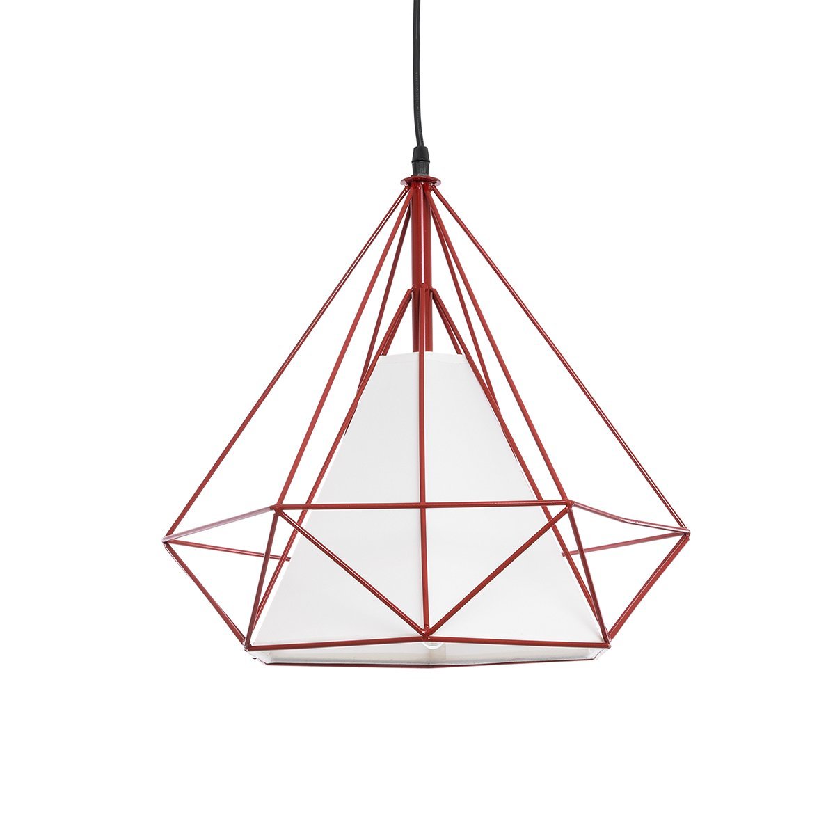 GloboStar® KAIRI 01620 Μοντέρνο Industrial Κρεμαστό Φωτιστικό Οροφής Μονόφωτο Κόκκινο με Άσπρο Ύφασμα Μεταλλικό Πλέγμα Φ38 x Υ39cm