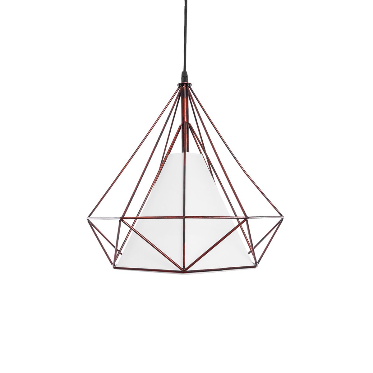 GloboStar® KAIRI 01623 Μοντέρνο Industrial Κρεμαστό Φωτιστικό Οροφής Μονόφωτο Καφέ Σκουριά με Άσπρο Ύφασμα Μεταλλικό Πλέγμα Φ38 x Υ39cm