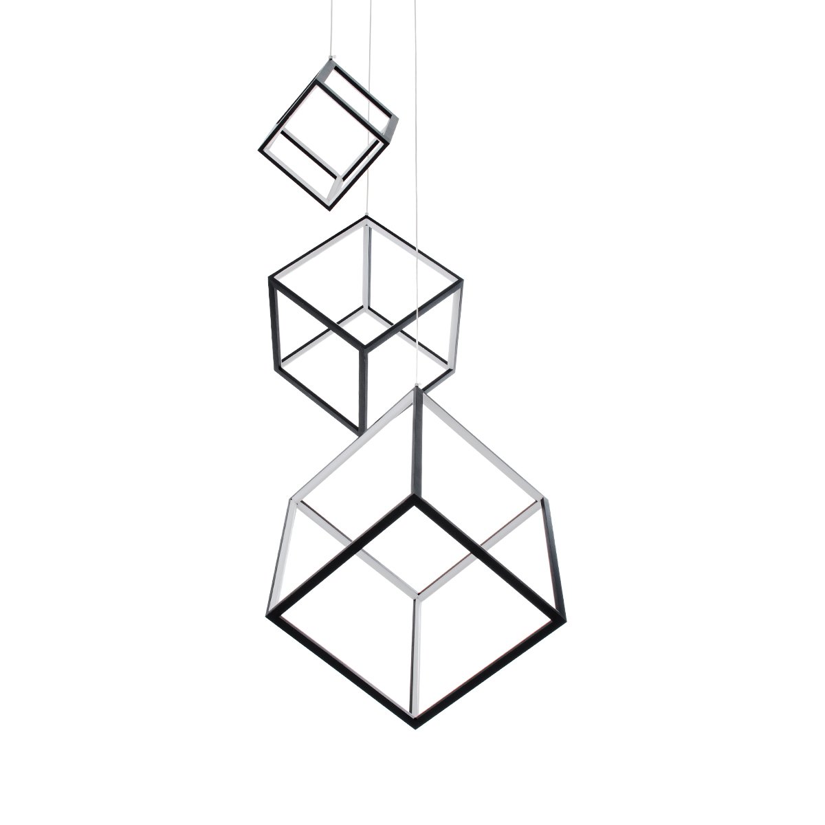 GLOBOSTAR® KIBOO-TRIO 60931 Μοντέρνο Κρεμαστό Φωτιστικό Οροφής LED 90W 10350lm 360° AC 220-240V IP20 Ρυθμιζόμενο Λευκό CCT με Χειριστήριο από 2700K έως 6000K Dimmable – Lumileds SMD Chip – Μαύρο Ματ – Μ60 x Π60 x Υ80cm – 3 Χρόνια Εγγύηση