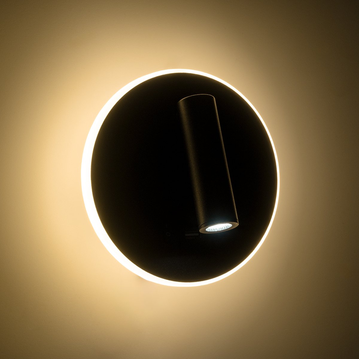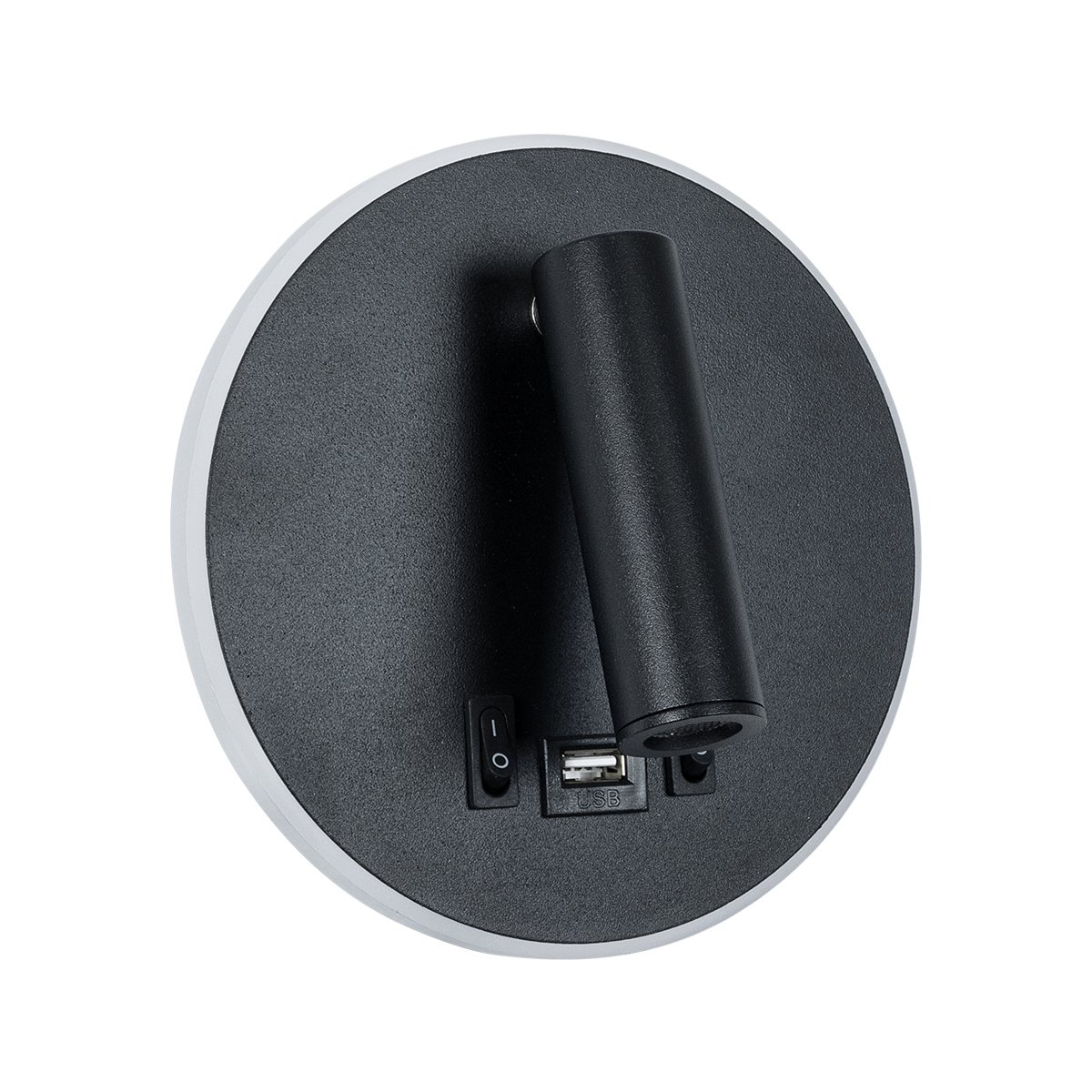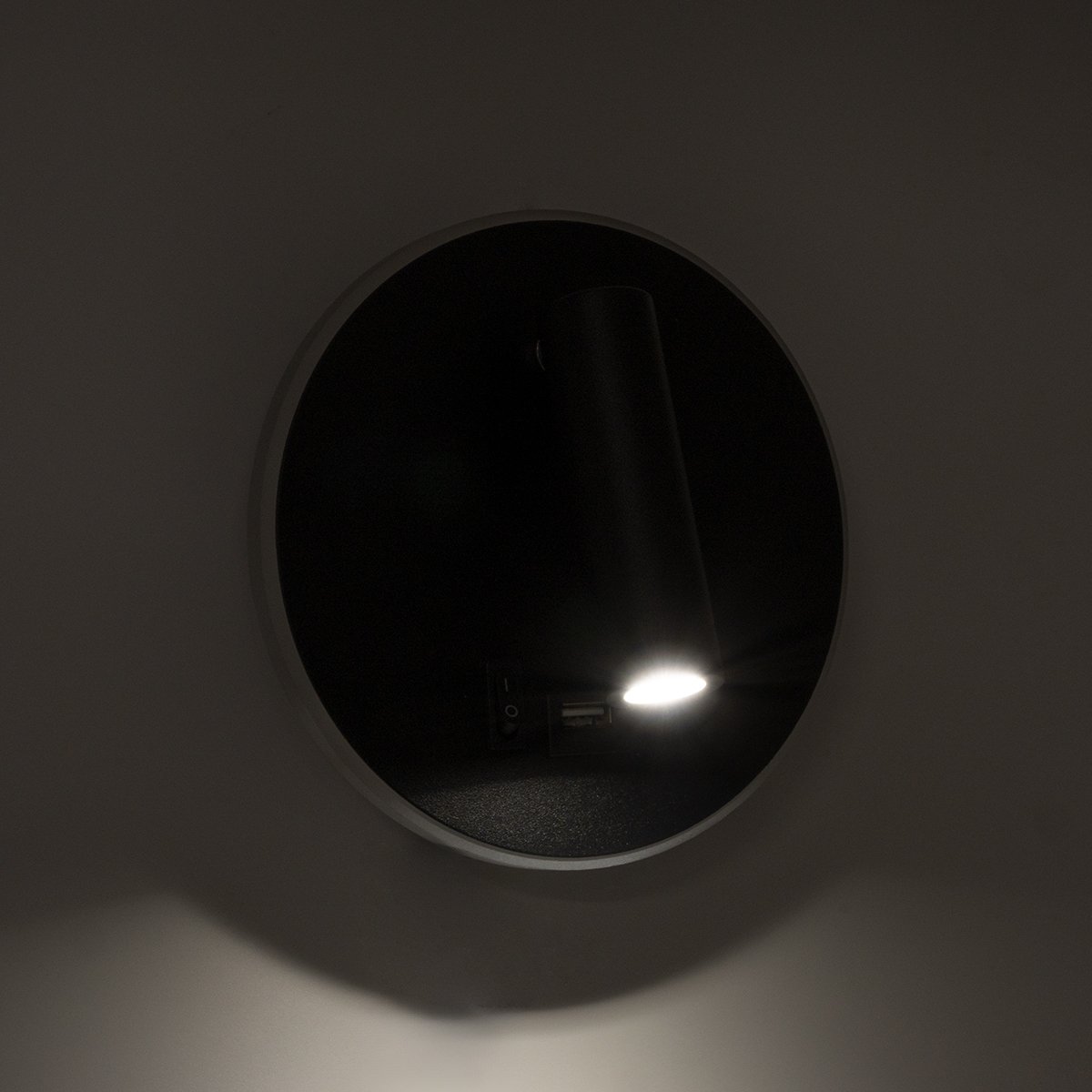 GLOBOSTAR® LADY-R 60938 Μοντέρνο Φωτιστικό Τοίχου – Απλίκα Ξενοδοχείου Reading Light με Φορτιστή USB 3A LED 6W 600lm 36° & 360° AC 220-240V IP20 Φυσικό Λευκό 4500K – Bridgelux COB Chip & TÜV SÜD Driver – Μαύρο Ματ – Μ15 x Π15 x Υ7cm – 3 Χρόνια Εγγύηση