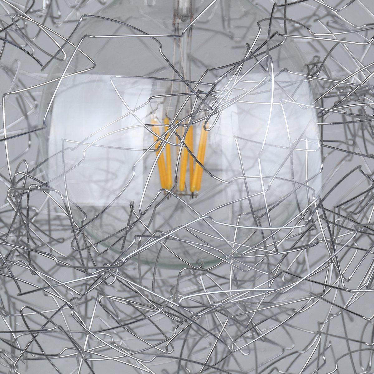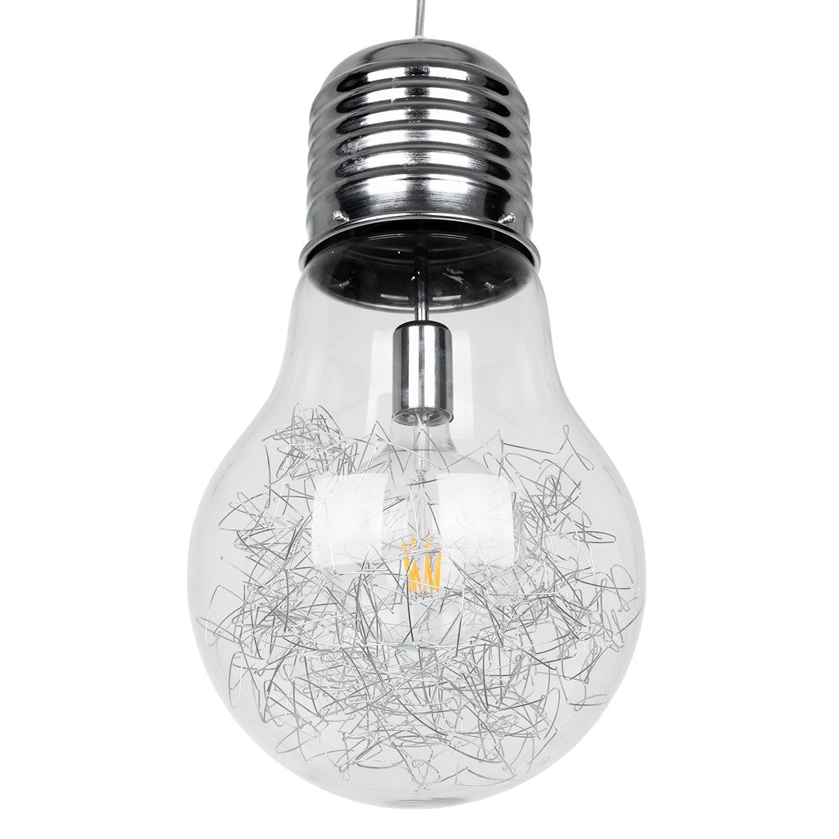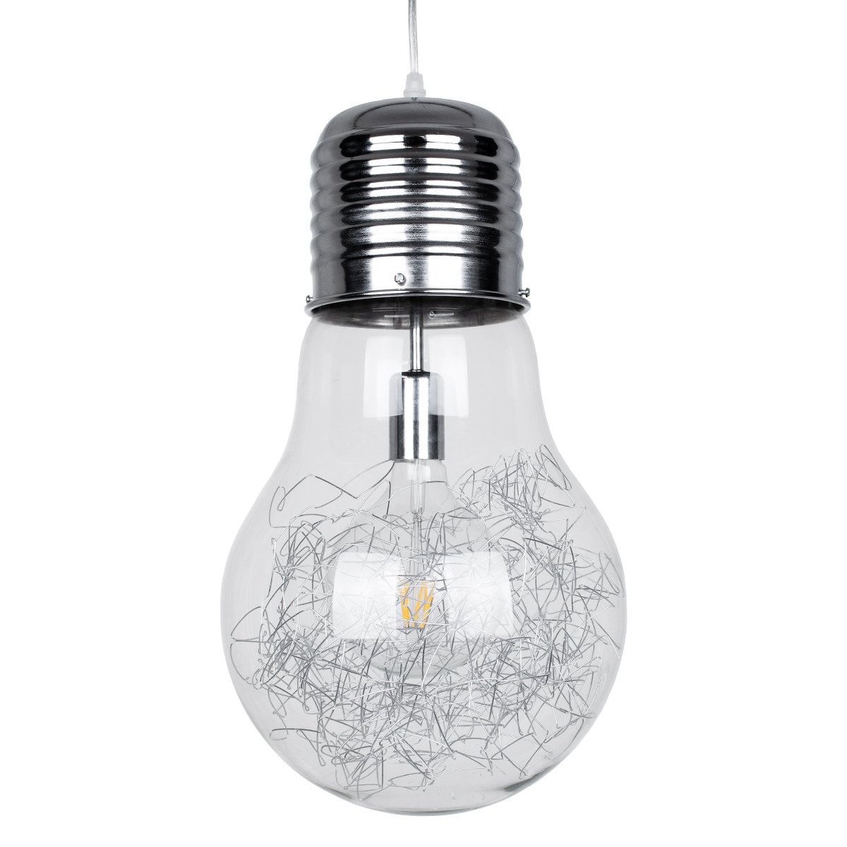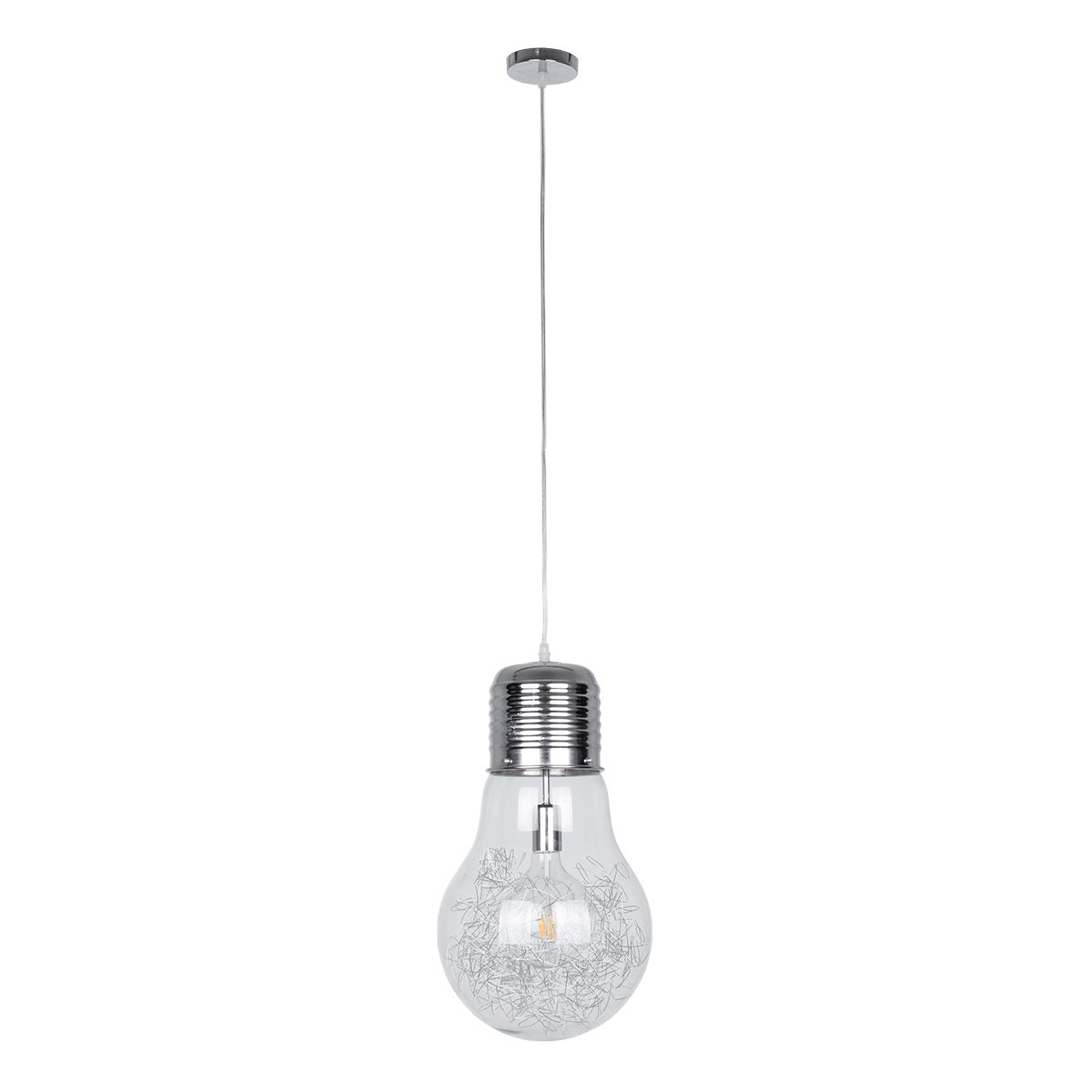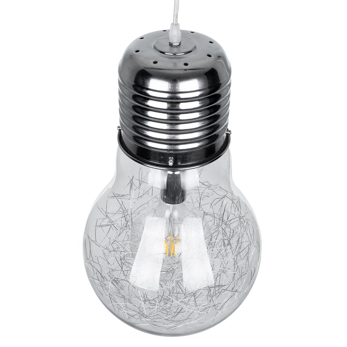 GLOBOSTAR® LAMP 01677 Μοντέρνο Κρεμαστό Φωτιστικό Οροφής με Ντουί 1 x E27 AC 220-240V IP20 – Ασημί & Διάφανο – Μ30 x Π30 x Υ52cm