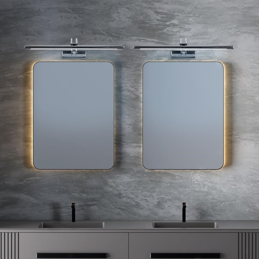 GLOBOSTAR® LAURA 60426 Μοντέρνο Φωτιστικό Τοίχου – Απλίκα Καθρέπτη Μπάνιου LED 12W 1400lm 120° AC 220-240V IP44 Φυσικό Λευκό 4500K – Lumileds SMD Chip & TÜV SÜD Driver – Ασημί – Μ60 x Π27 x Υ13cm – 3 Χρόνια Εγγύηση