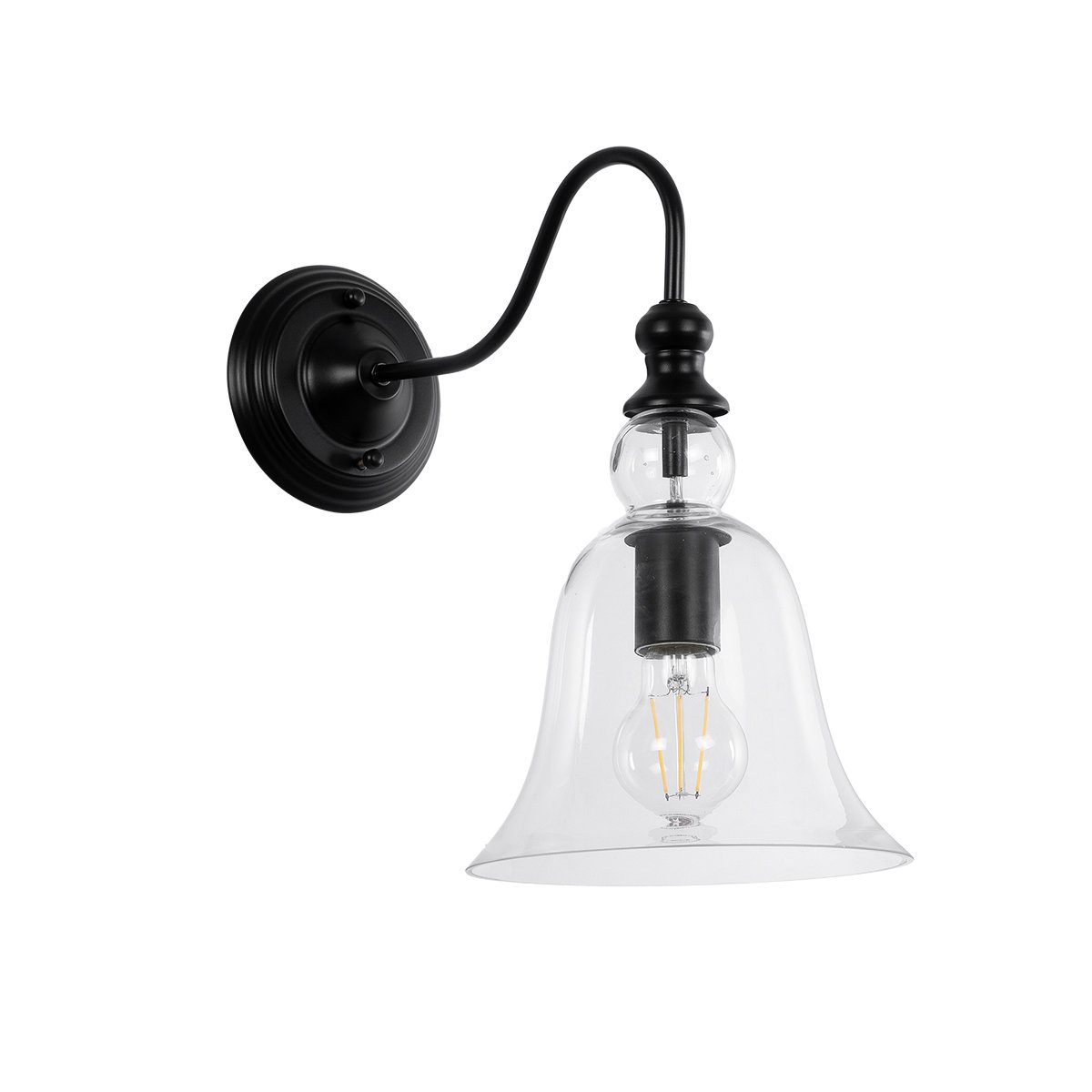 GLOBOSTAR® LILLY 01064 Vintage Φωτιστικό Τοίχου – Απλίκα με Ντουί 1 x E27 AC 220-240V IP20 – Μαύρο & Διάφανο – Μ38 x Π20 x Υ37cm