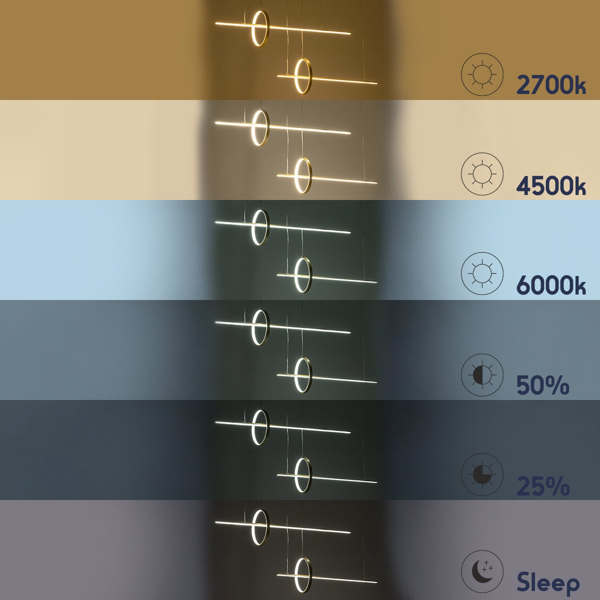 GLOBOSTAR® LINEARE 61291 Μοντέρνο Κρεμαστό Φωτιστικό Οροφής LED 67W 7504lm 300° AC 220-240V IP20 Ρυθμιζόμενο Λευκό CCT με Χειριστήριο από 2700K έως 6000K Dimmable – Lumileds SMD Chip – Χρυσό Βούρτσας – Μ130 x Π25 x Υ60cm – 3 Χρόνια Εγγύηση