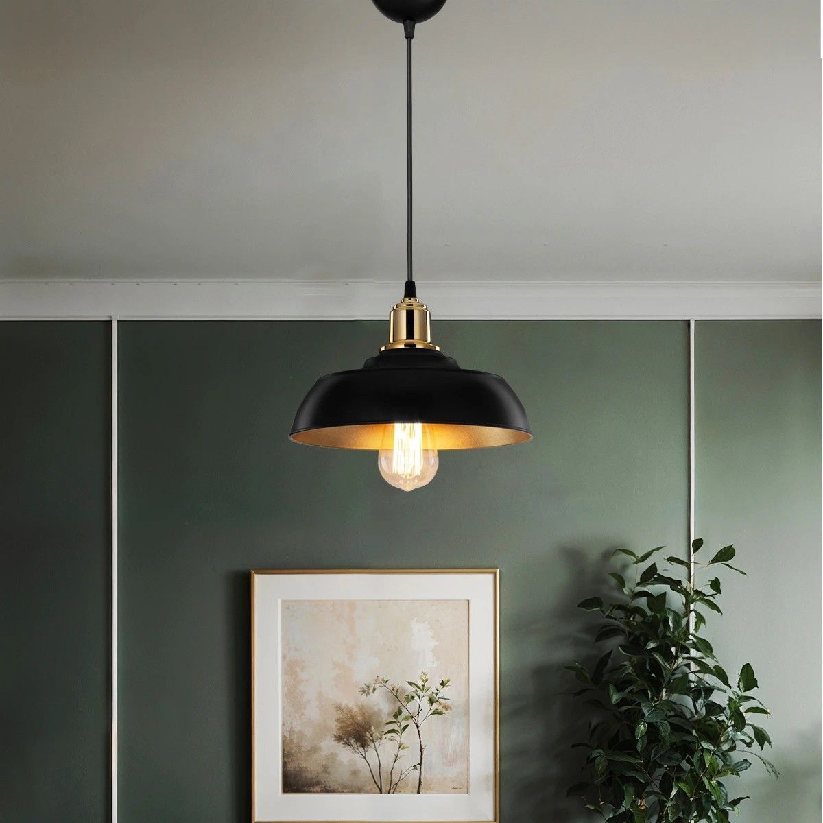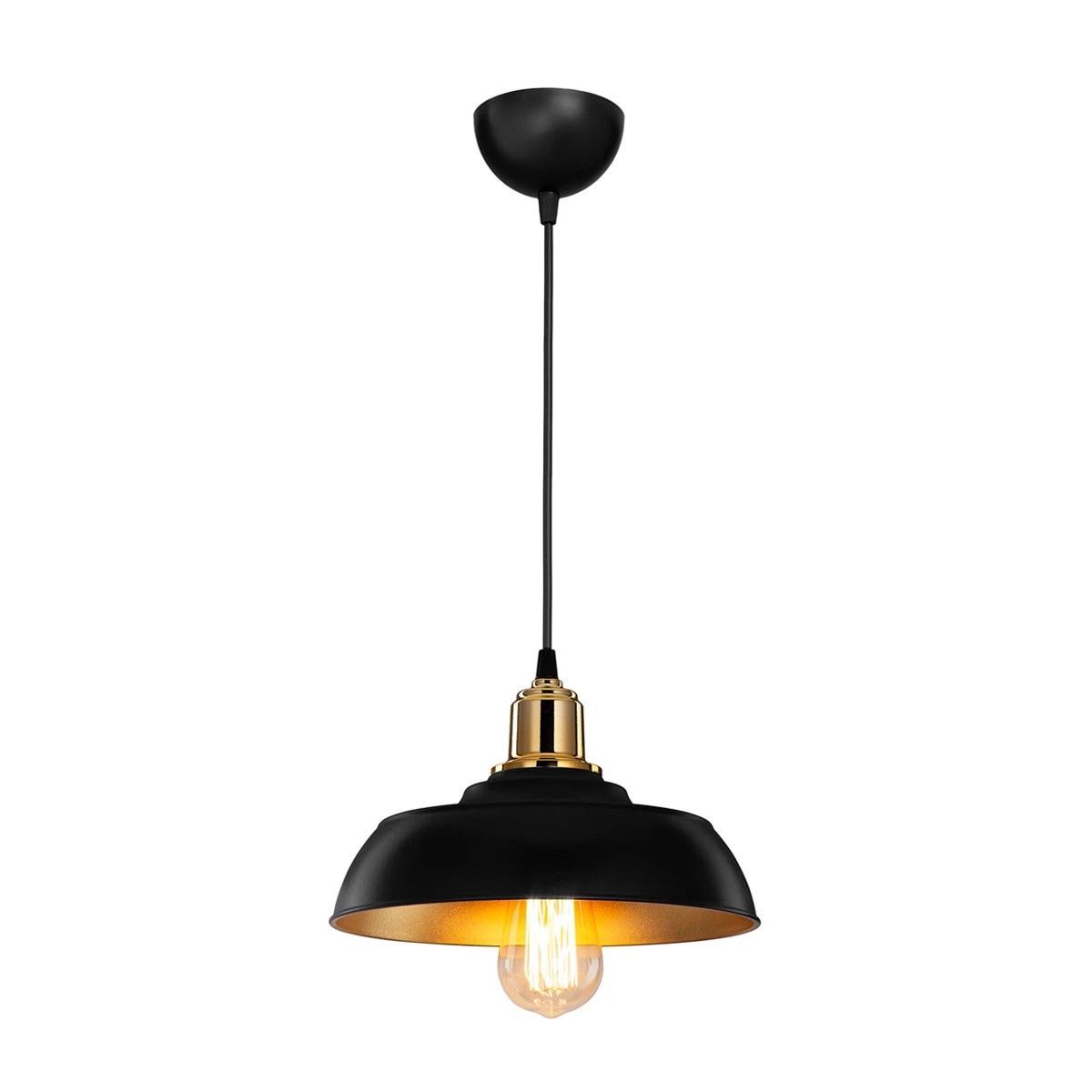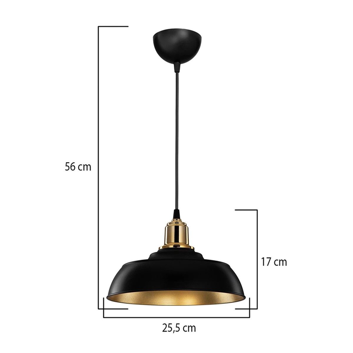GLOBOSTAR® LOAN 203-0279 Μοντέρνο Κρεμαστό Φωτιστικό Οροφής με Ντουί 1 x E27 AC 220-240V IP20 – Μαύρο & Χρυσό – Μ25.5 x Π25.5 x Υ17cm