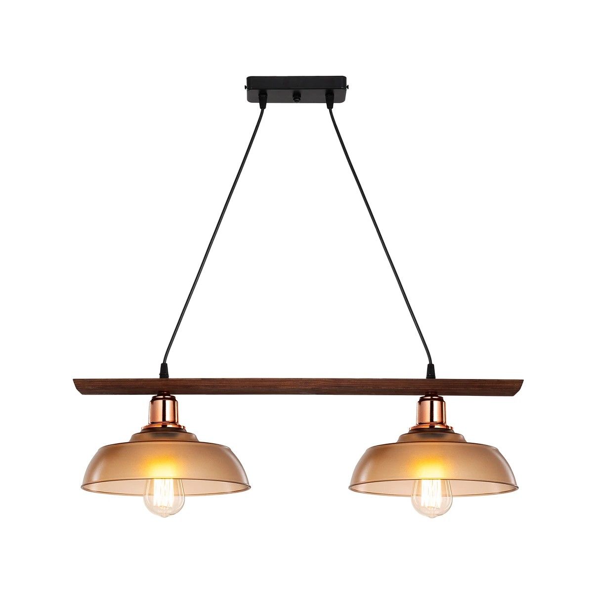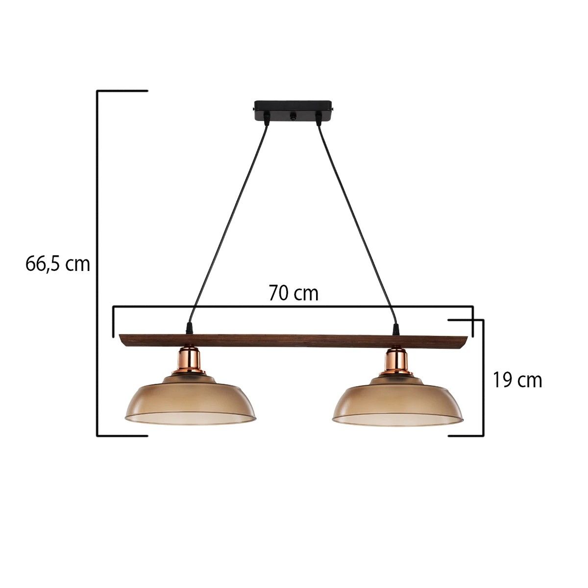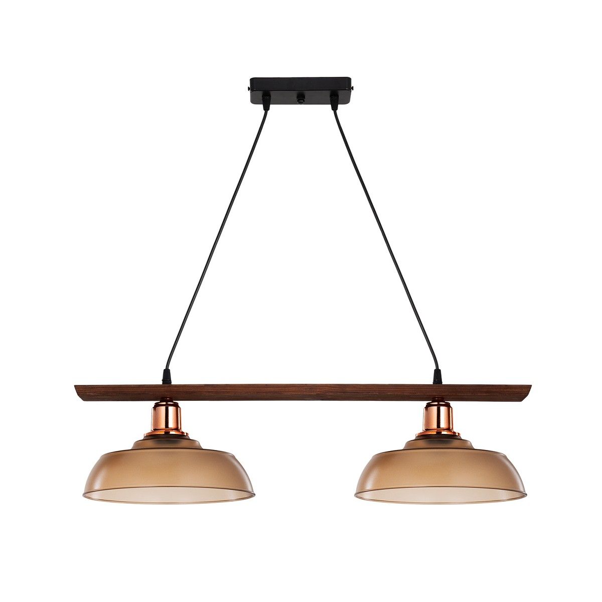 GLOBOSTAR® LOAN 203-0288 Μοντέρνο Κρεμαστό Φωτιστικό Οροφής με Ντουί 2 x E27 AC 220-240V IP20 – Καφέ & Μπρονζέ – Μ70 x Π25.5 x Υ19cm