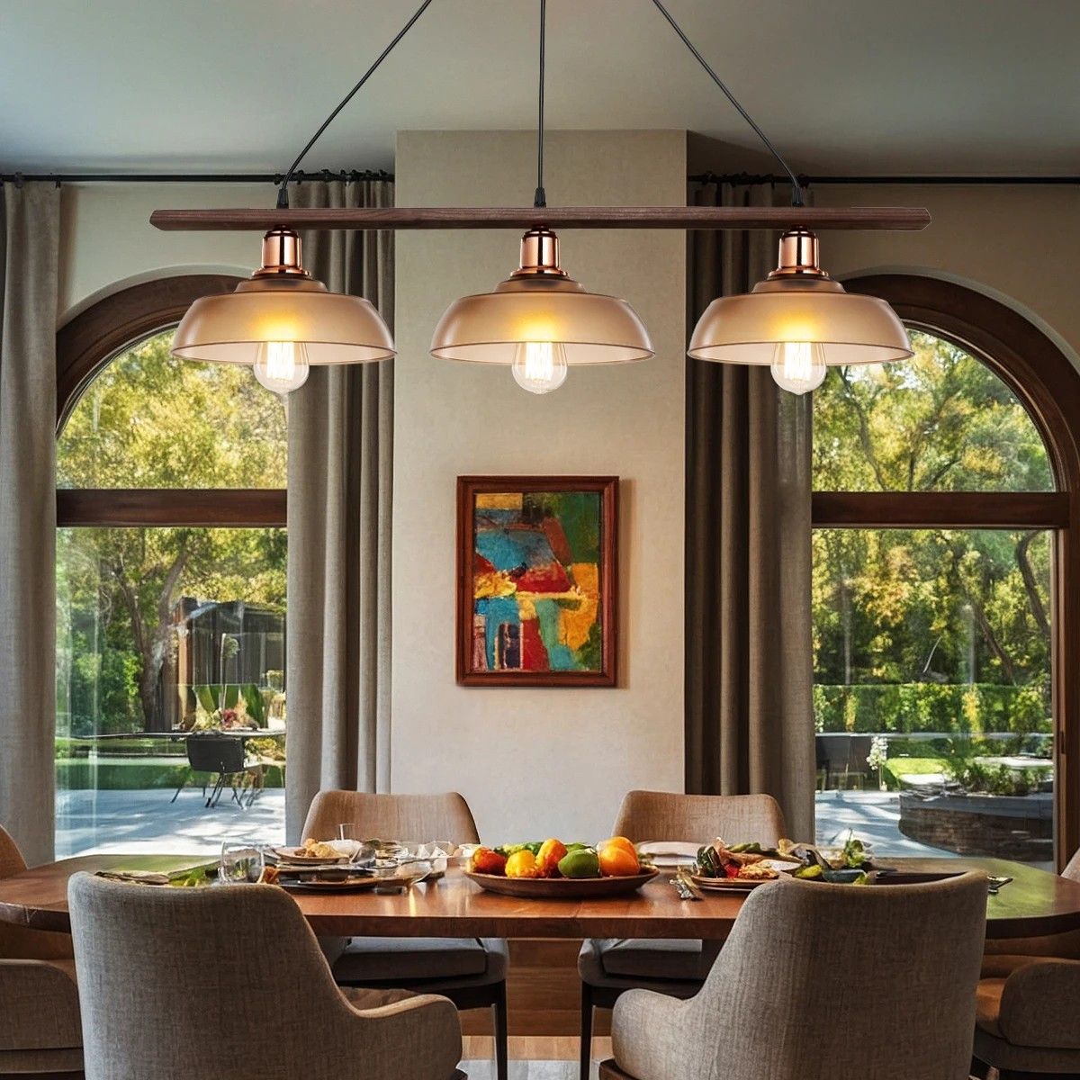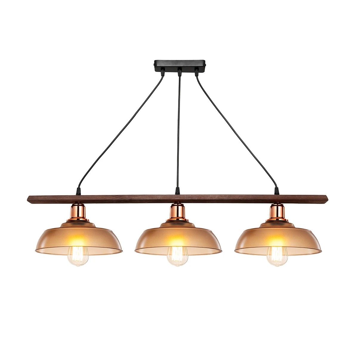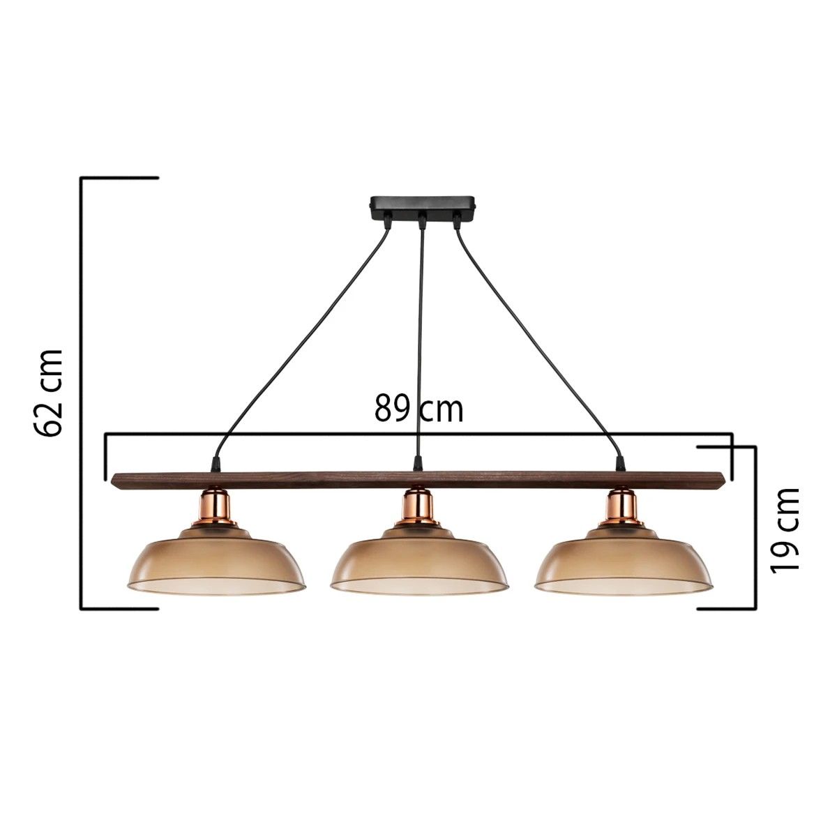 GLOBOSTAR® LOAN 203-0289 Μοντέρνο Κρεμαστό Φωτιστικό Οροφής με Ντουί 3 x E27 AC 220-240V IP20 – Καφέ & Μπρονζέ – Μ89 x Π25.5 x Υ19cm
