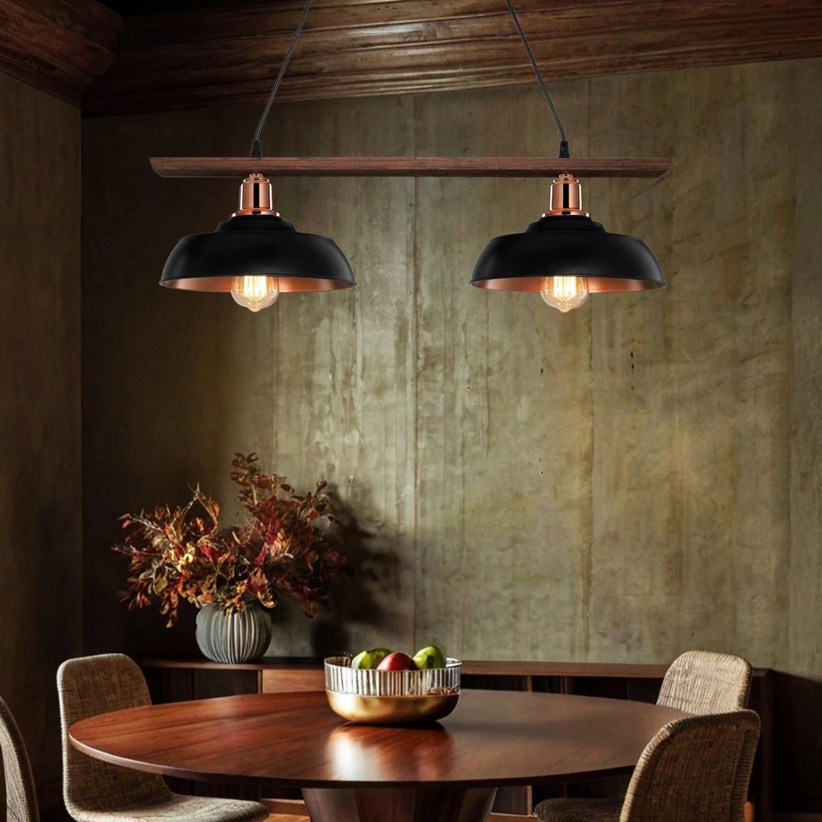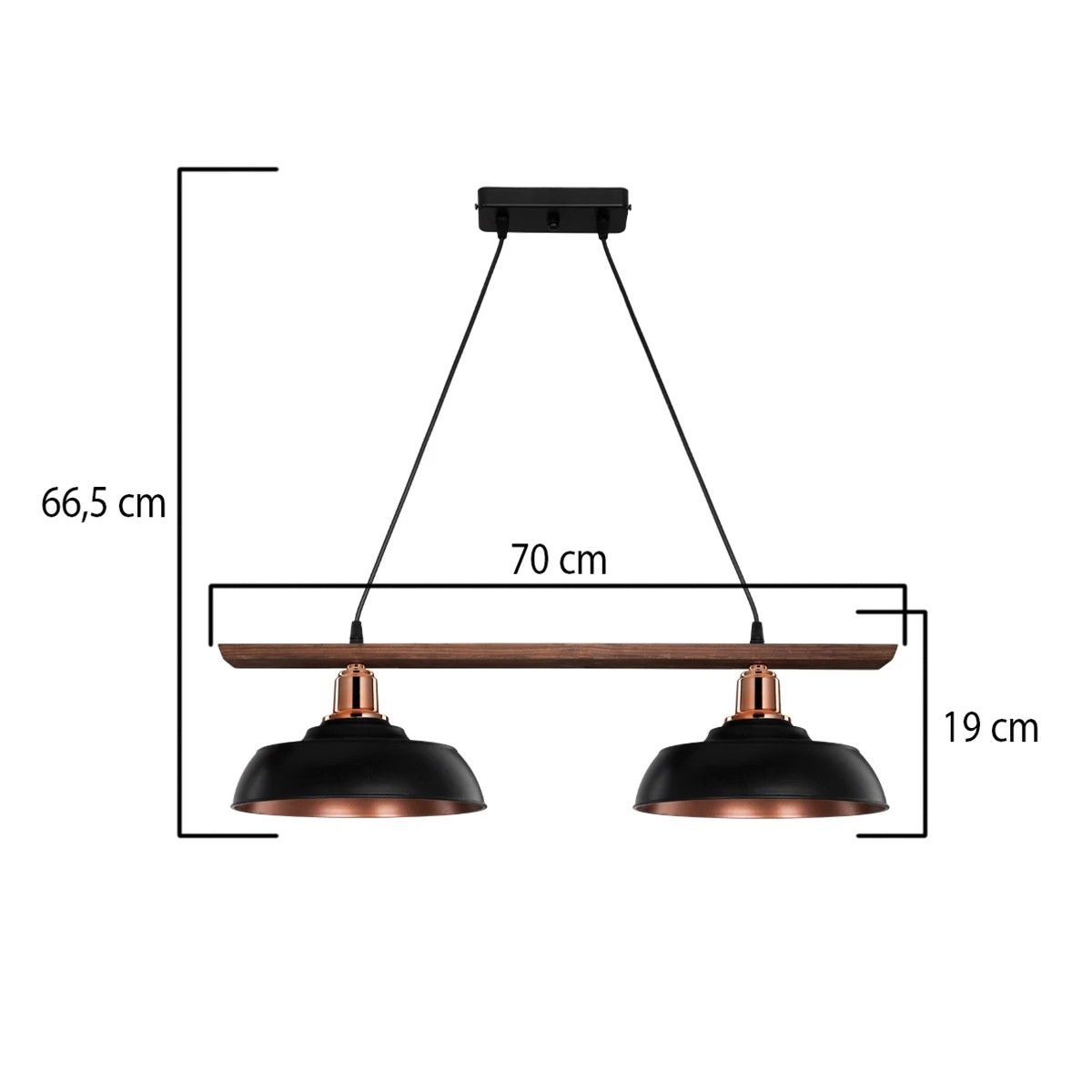 GLOBOSTAR® LOAN 203-0290 Μοντέρνο Κρεμαστό Φωτιστικό Οροφής με Ντουί 2 x E27 AC 220-240V IP20 – Μαύρο & Μπρονζέ – Μ70 x Π25.5 x Υ19cm