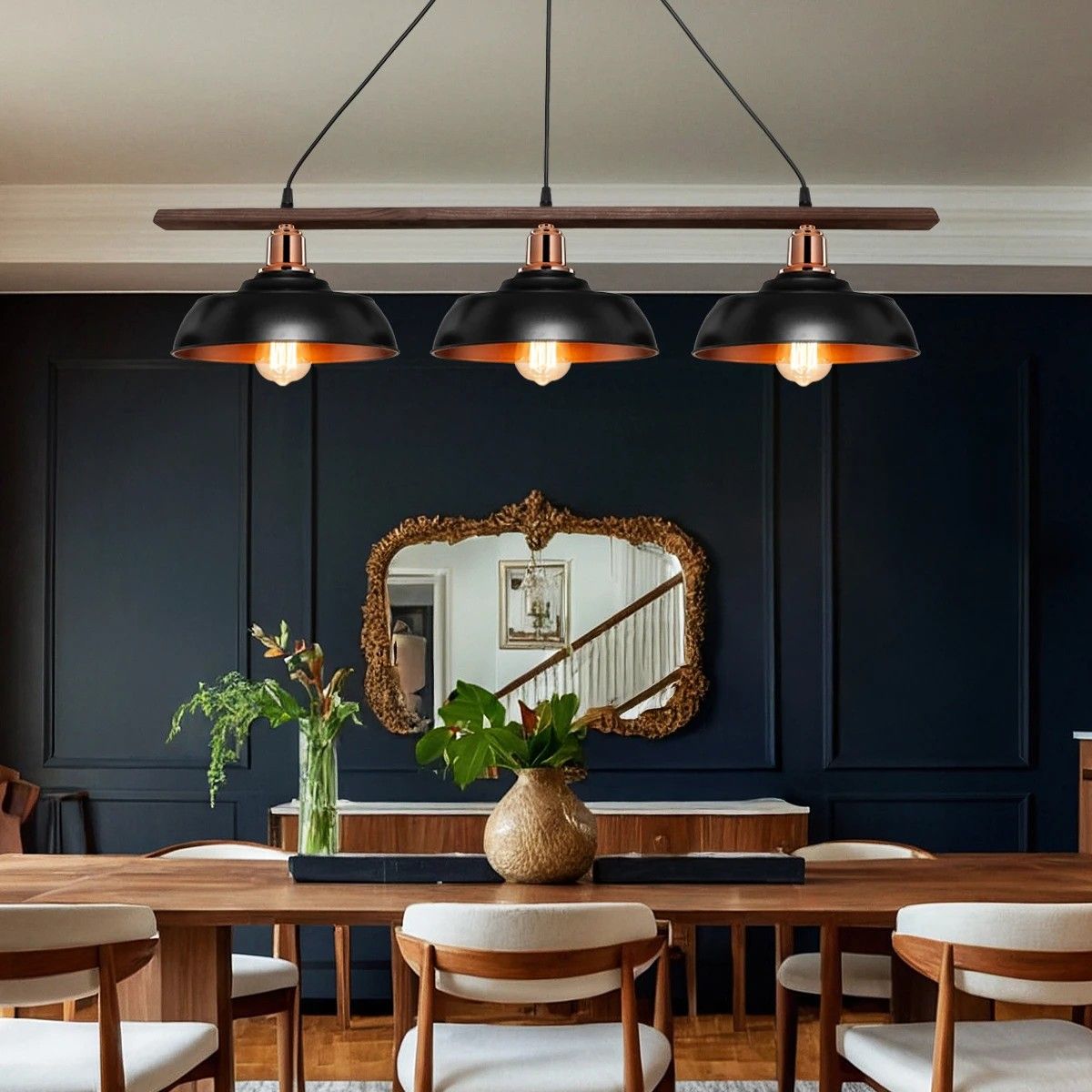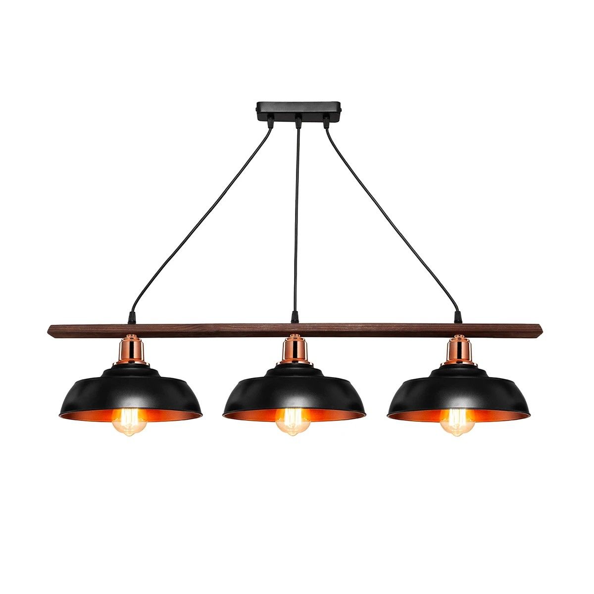 GLOBOSTAR® LOAN 203-0291 Μοντέρνο Κρεμαστό Φωτιστικό Οροφής με Ντουί 3 x E27 AC 220-240V IP20 – Μαύρο & Μπρονζέ – Μ89 x Π25.5 x Υ19cm