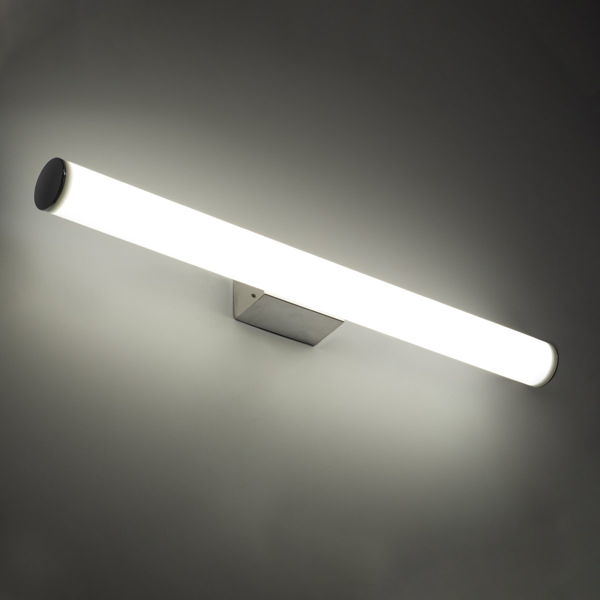 GLOBOSTAR® MABEL 60430 Μοντέρνο Φωτιστικό Τοίχου – Απλίκα Καθρέπτη Μπάνιου LED 12W 1400lm 240° AC 220-240V IP44 Φυσικό Λευκό 4500K – Lumileds SMD Chip & TÜV SÜD Driver – Νίκελ Χρώμιο – Μ60 x Π10 x Υ5cm – 3 Χρόνια Εγγύηση