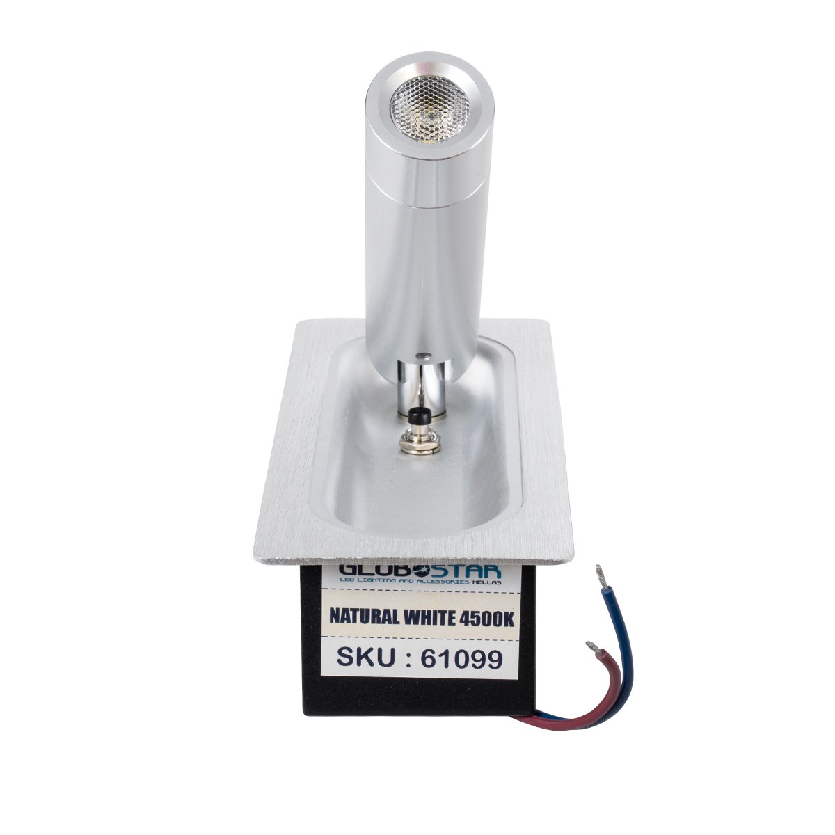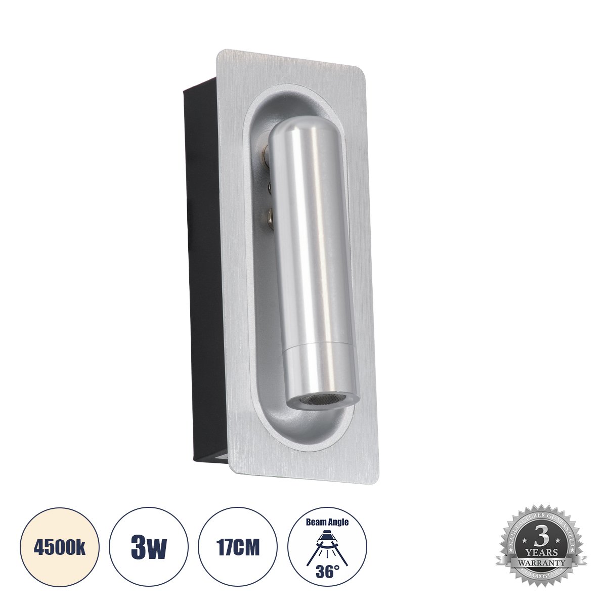 GLOBOSTAR® MANHATTAN 61099 Μοντέρνο Φωτιστικό Τοίχου – Απλίκα Ξενοδοχείου Reading Light LED 3W 405lm 36° AC 220-240V IP20 Φυσικό Λευκό 4500K – Bridgelux COB Chip & TÜV SÜD Driver – Νίκελ Βούρτσας – Μ7 x Π7 x Υ17cm – 3 Χρόνια Εγγύηση