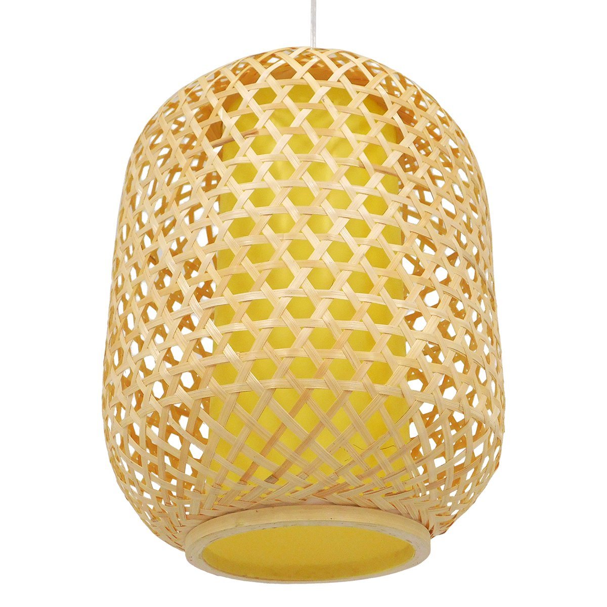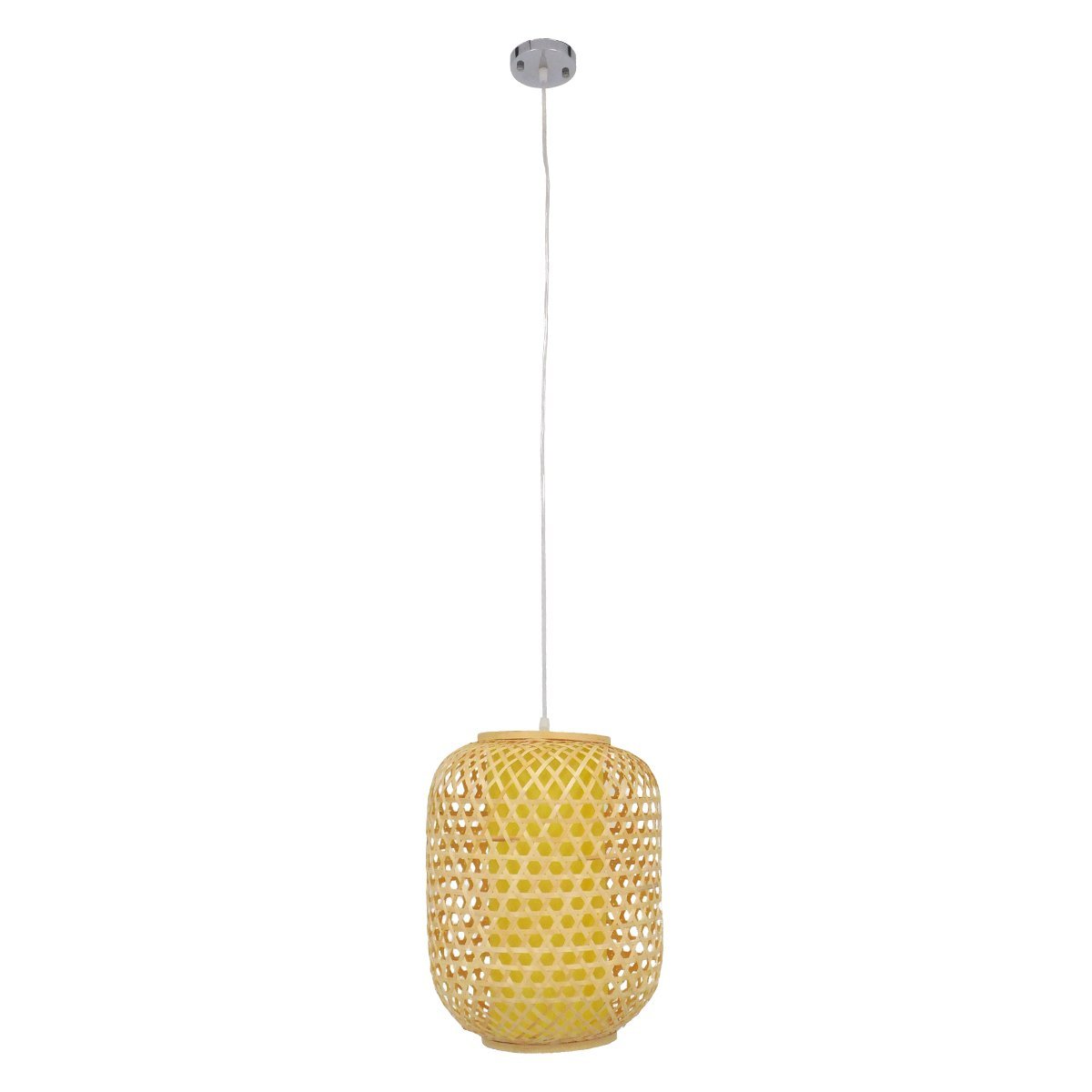 GloboStar® MAURITIUS 00899 Vintage Κρεμαστό Φωτιστικό Οροφής Μονόφωτο Καφέ Ξύλινο Bamboo Φ30 x Υ40cm
