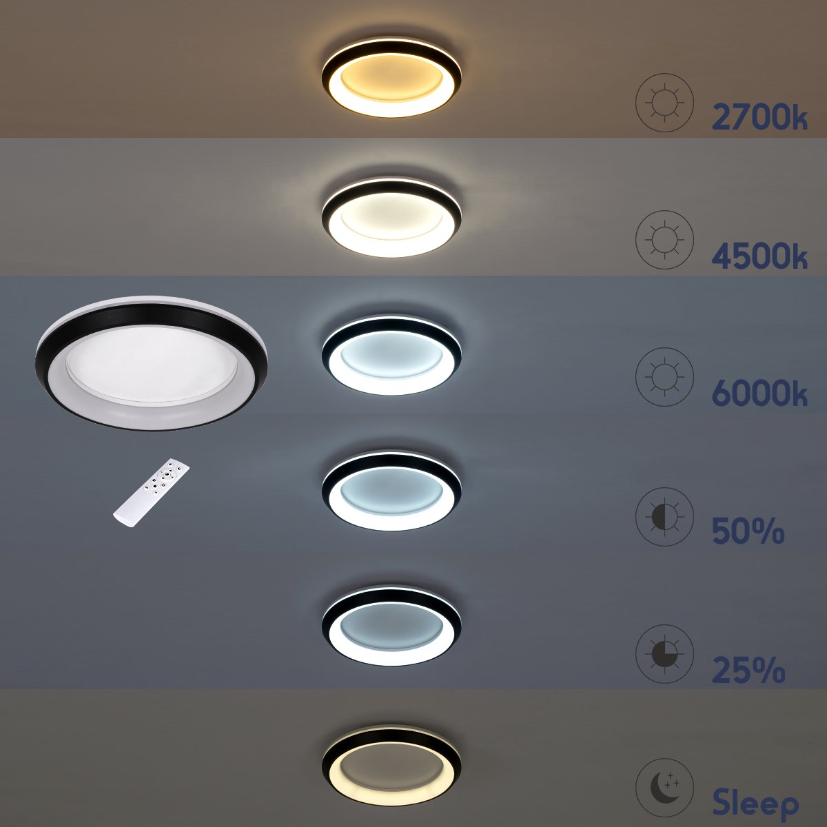 GLOBOSTAR® MELINA 61040 Μοντέρνο Φωτιστικό Οροφής LED 55W 6376lm 120° AC 220-240V IP20 Ρυθμιζόμενο Λευκό CCT με Χειριστήριο από 2700K έως 6000K Dimmable – Lumileds SMD Chip – Μαύρο Ματ – Μ48 x Π48 x Υ9cm – 3 Χρόνια Εγγύηση