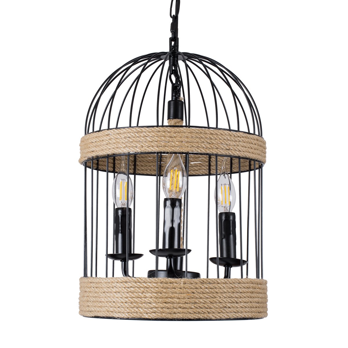 GLOBOSTAR® MERLIN 00865 Vintage Κρεμαστό Φωτιστικό Οροφής με Ντουί 3 x E14 AC 220-240V IP20 – Μαύρο & Μπεζ – Μ28 x Π28 x Υ40cm