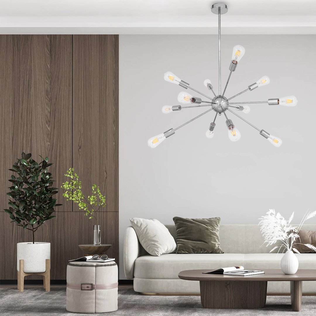 GLOBOSTAR® MILANO 01487 Μοντέρνο Φωτιστικό Οροφής με Ντουί 12 x E27 AC 220-240V IP20 – Ασημί – Μ80 x Π80 x Υ80cm