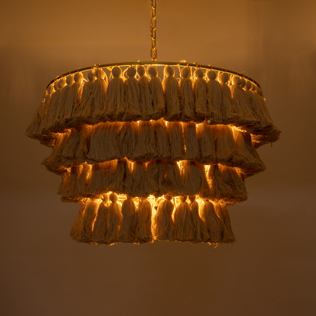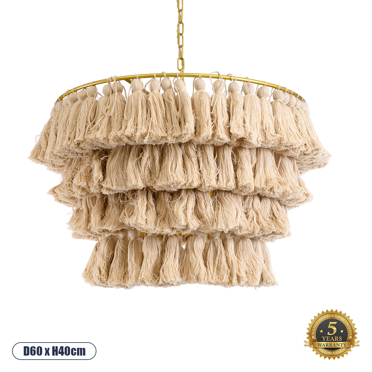 GLOBOSTAR® MISSOULA 02088 Boho Κρεμαστό Φωτιστικό Οροφής με Ντουί 1 x E27 AC 220-240V IP20 – Μπεζ & Χρυσό – Μ60 x Π60 x Υ40cm