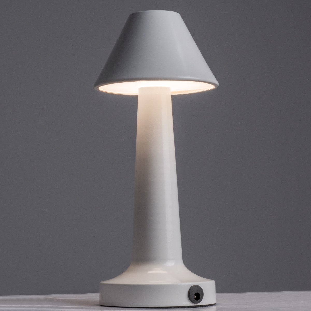 GloboStar® MOLLY 76514 Επαναφορτιζόμενο Επιτραπέζιο Φωτιστικό Πορτατίφ LED 1.5W 105lm 120° DC 5V IP44 Θερμό Λευκό 2700K Dimmable Λευκό Αλουμίνιο – Μ10 x Π10 x Υ23cm – 2 Xρόνια Εγγύηση