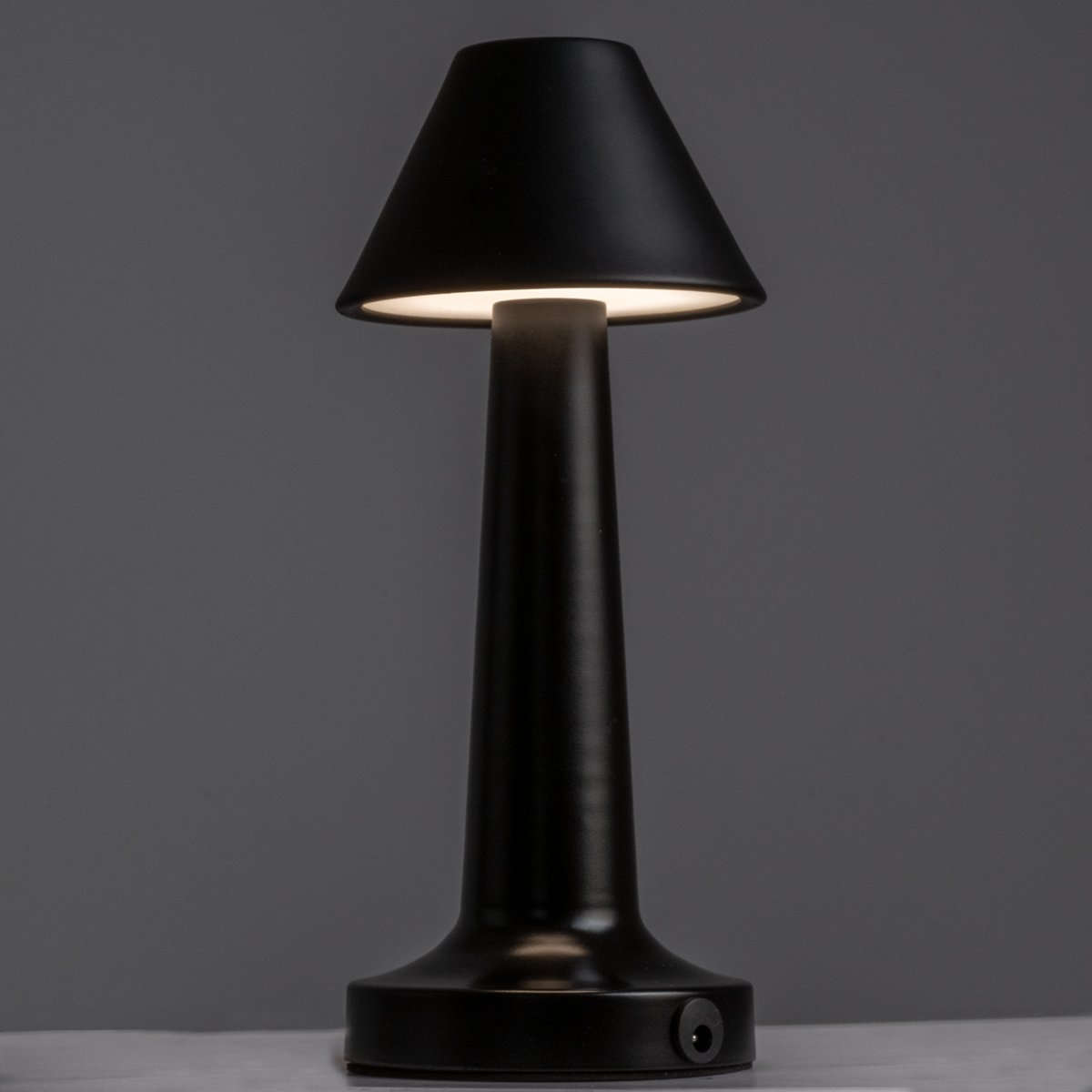 GloboStar® MOLLY 76515 Επαναφορτιζόμενο Επιτραπέζιο Φωτιστικό Πορτατίφ LED 1.5W 105lm 120° DC 5V IP44 Θερμό Λευκό 2700K Dimmable Μαύρο Αλουμίνιο – Μ10 x Π10 x Υ23cm – 2 Xρόνια Εγγύηση