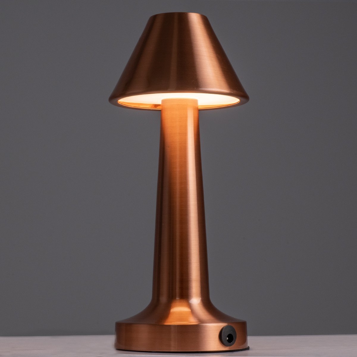 GloboStar® MOLLY 76517 Επαναφορτιζόμενο Επιτραπέζιο Φωτιστικό Πορτατίφ LED 1.5W 105lm 120° DC 5V IP44 Θερμό Λευκό 2700K Dimmable Χάλκινο Αλουμίνιο – Μ10 x Π10 x Υ23cm – 2 Xρόνια Εγγύηση