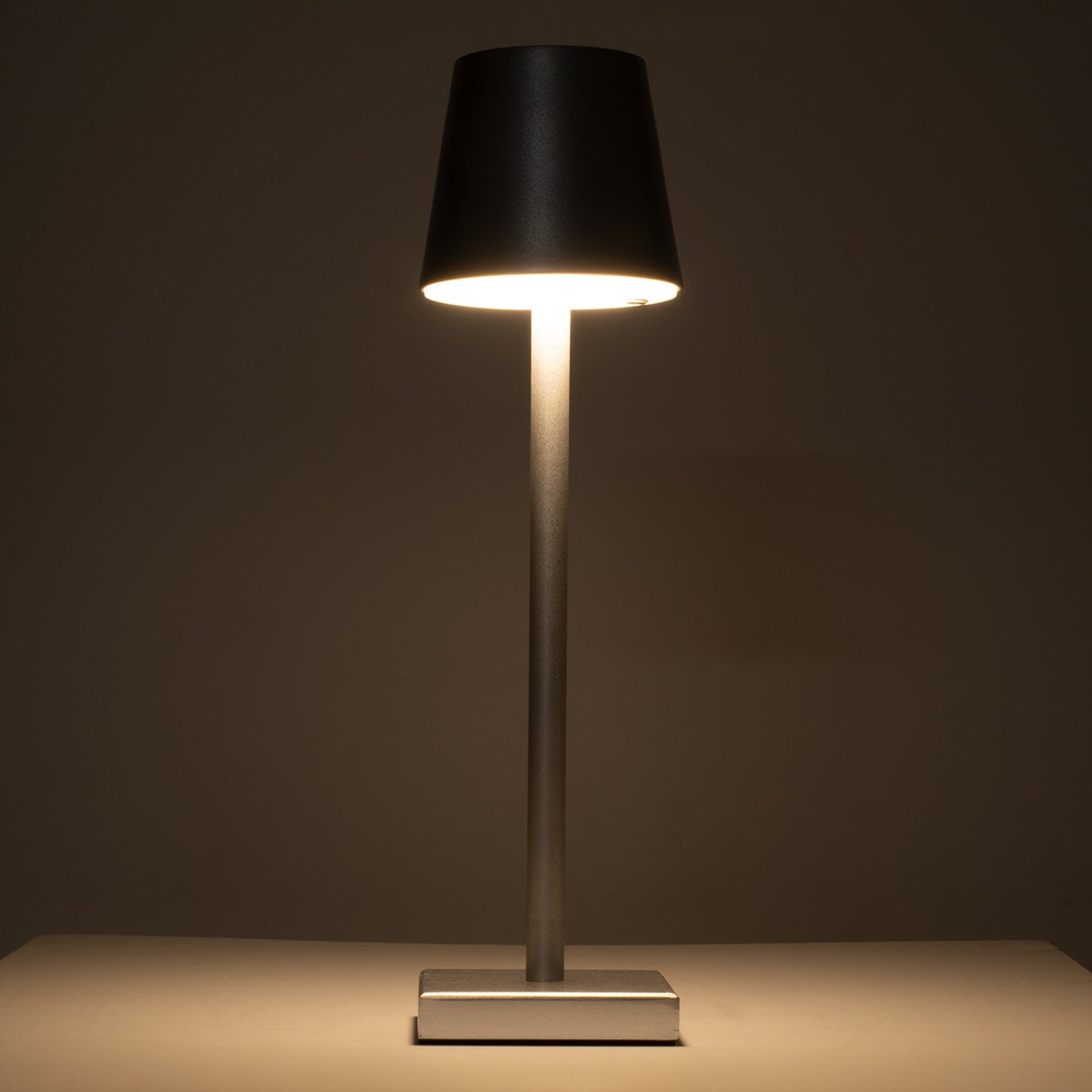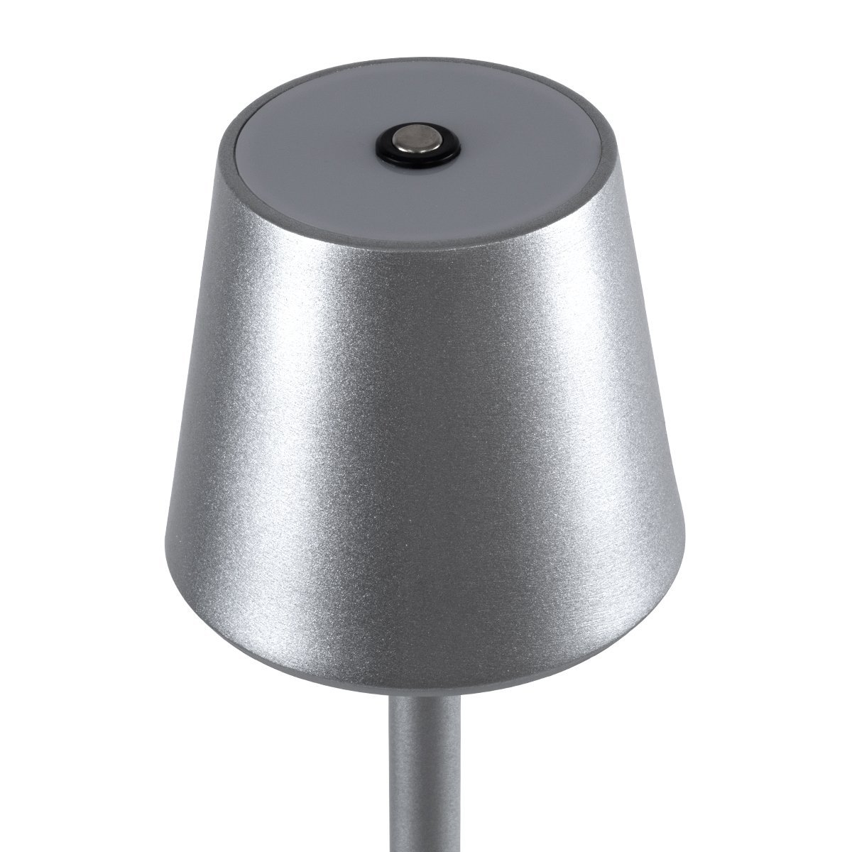 GLOBOSTAR® NEGA 60476 Μοντέρνο Επιτραπέζιο Φωτιστικό LED 2.2W 154lm 360° DC 5V με USB με Επαναφορτιζόμενη Μπαταρία Li-ion 3.7V 4000mAh IP20 Θερμό Λευκό 2700K με Αφή Dimmable – Lumileds SMD Chip – Ασημί – Μ10 x Π10 x Υ39cm – 2 Χρόνια Εγγύηση