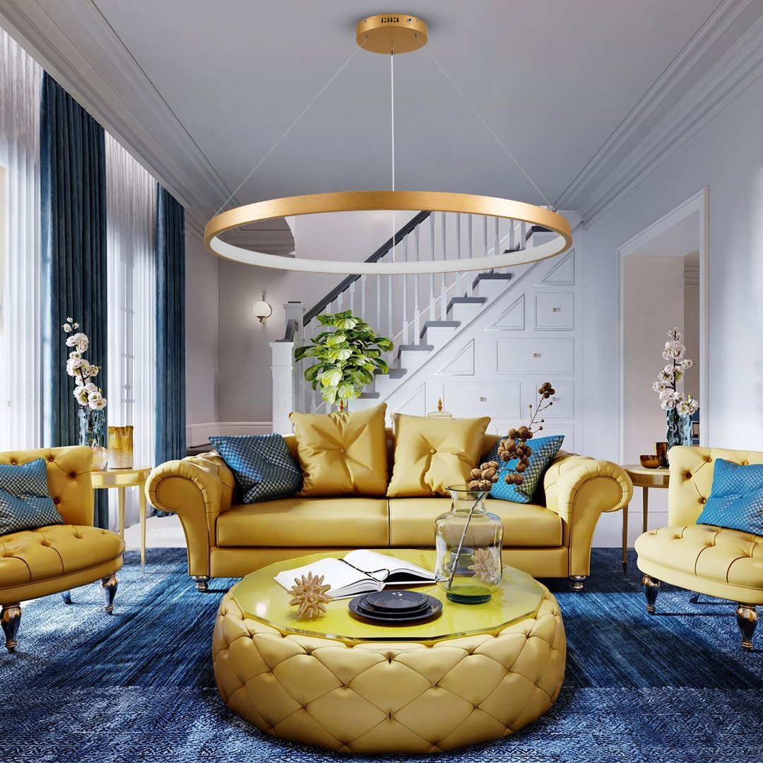 GLOBOSTAR® NEMESIS 61166 Μοντέρνο Κρεμαστό Φωτιστικό Οροφής LED 75W 8743lm 360° AC 220-240V IP20 Ρυθμιζόμενο Λευκό CCT με Χειριστήριο από 2700K έως 6000K Dimmable – Lumileds SMD Chip – Χρυσό Βούρτσας – Μ100 x Π100 x Υ4cm – 3 Χρόνια Εγγύηση