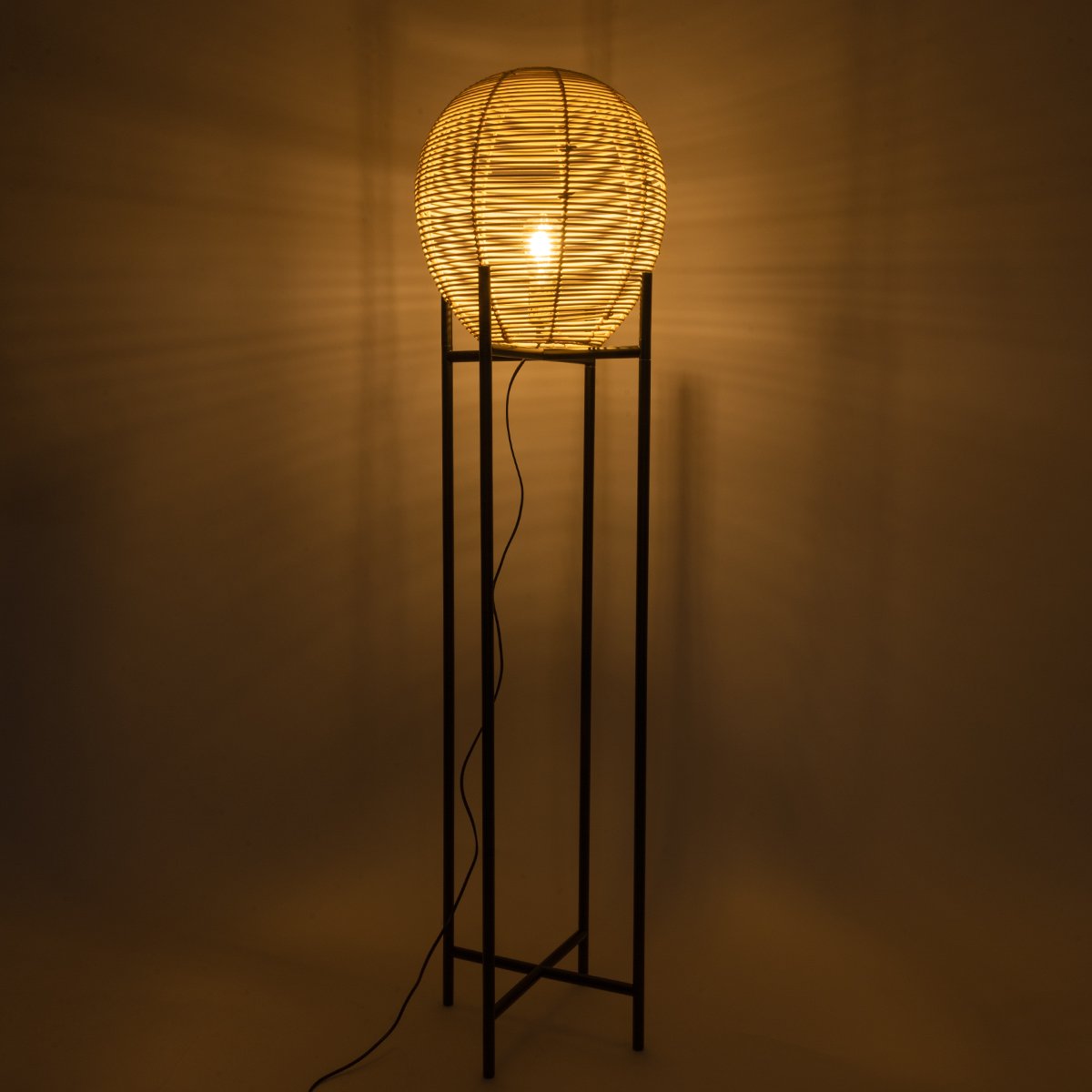 GLOBOSTAR® NERINA 02016 Boho Επιδαπέδιο Φωτιστικό με Ντουί 1 x E27 AC 220-240V IP20 – Μαύρο & Μπεζ – Μ40 x Π40 x Υ160cm