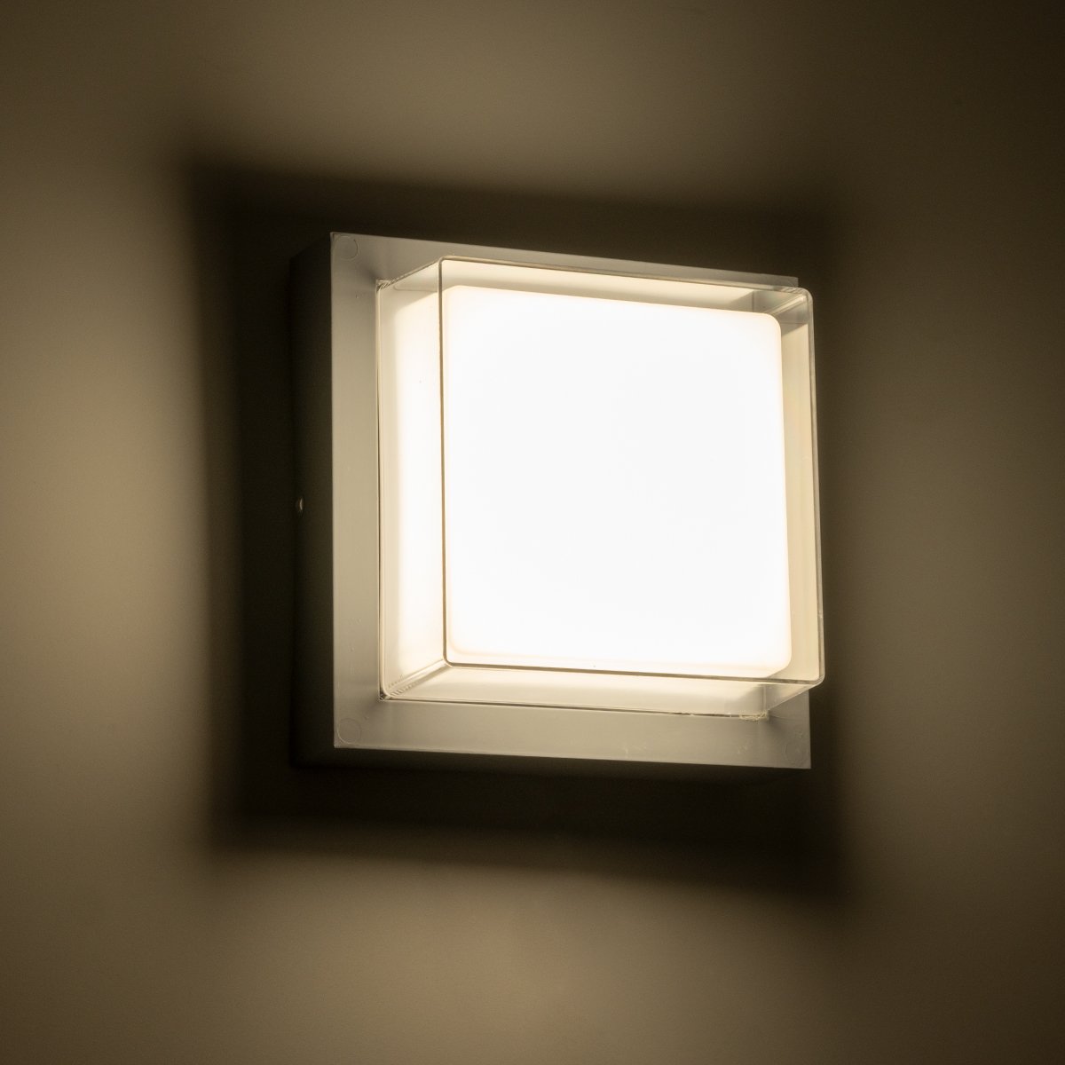 GLOBOSTAR® NEXUS 60768 Μοντέρνο Φωτιστικό Τοίχου – Απλίκα LED 10W 1050lm 120° AC 220-240V Αδιάβροχο IP65 Φυσικό Λευκό 4500K – Bridgelux SMD Chip – Γκρι – Μ17 x Π17 x Υ9cm – 3 Χρόνια Εγγύηση