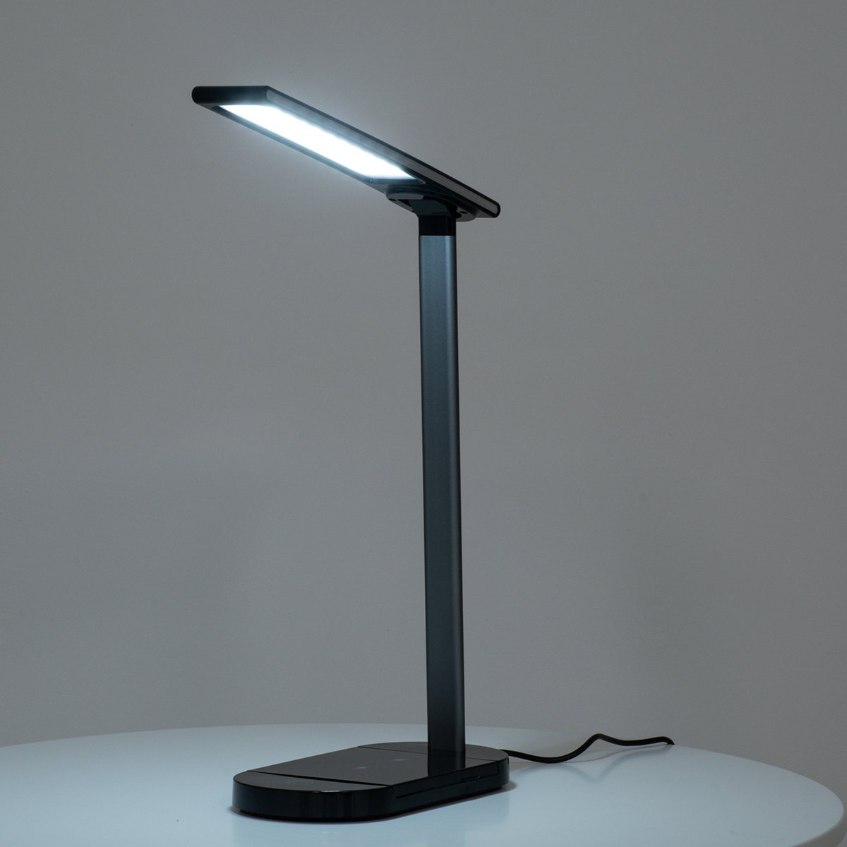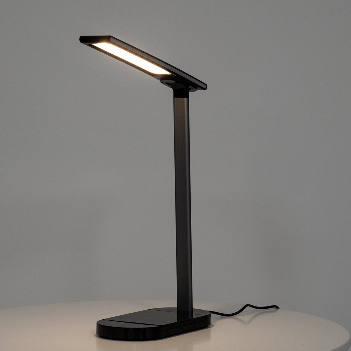 GLOBOSTAR® ONO 76530 Μοντέρνο Επιτραπέζιο Φωτιστικό Γραφείου με Ασύρματη Φόρτιση 10W 2A LED 5W 500lm 180° DC 5V με USB IP20 Ρυθμιζόμενο Λευκό CCT με Αφή 2700K/4500K/6000K Dimmable – Sanan SMD Chip – Μαύρο – Μ25 x Π10.5 x Υ35.5cm – 2 Χρόνια Εγγύηση