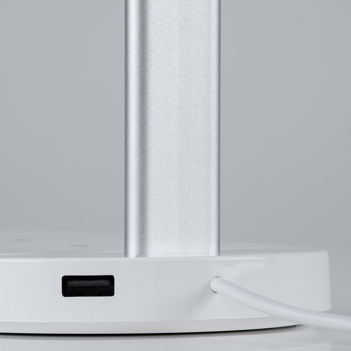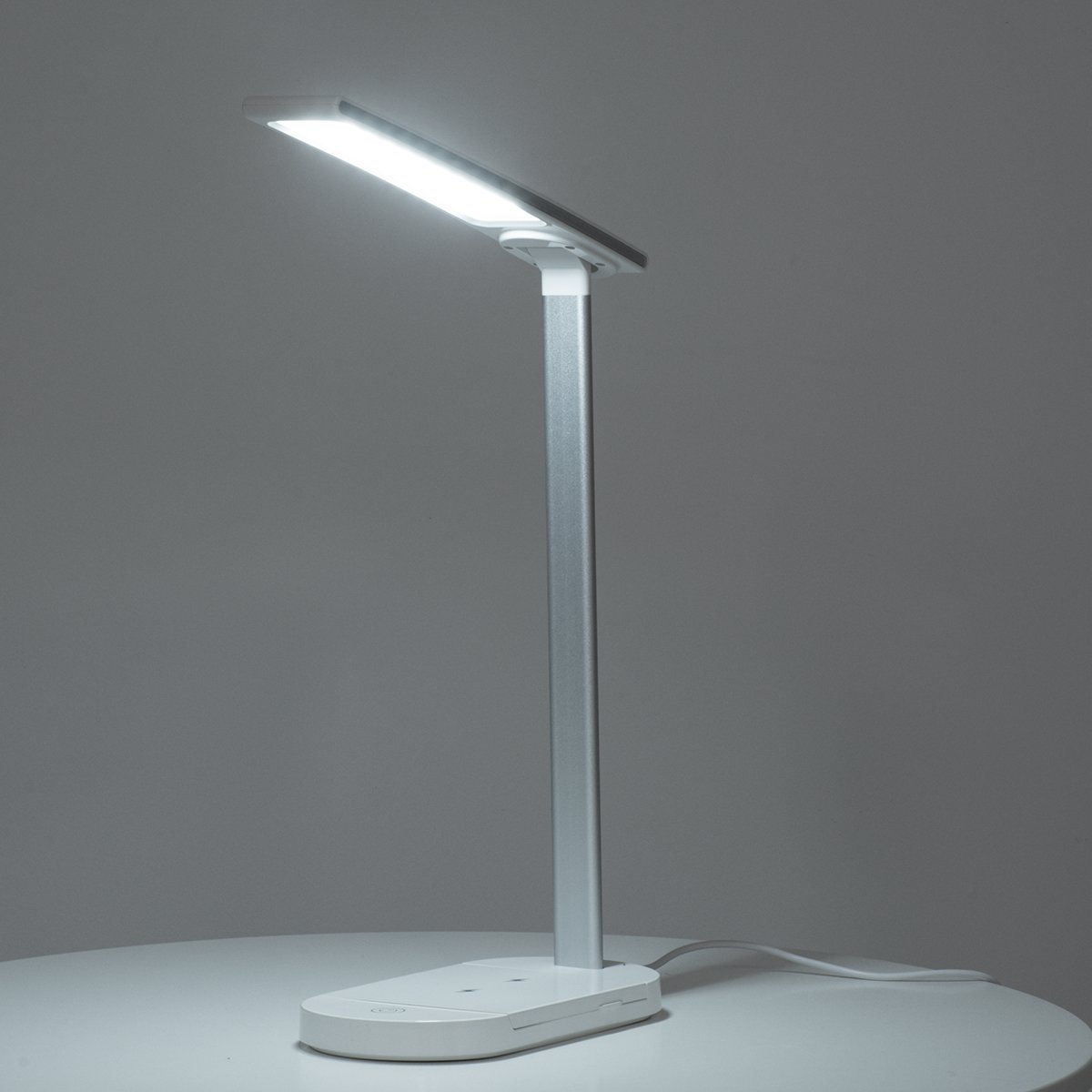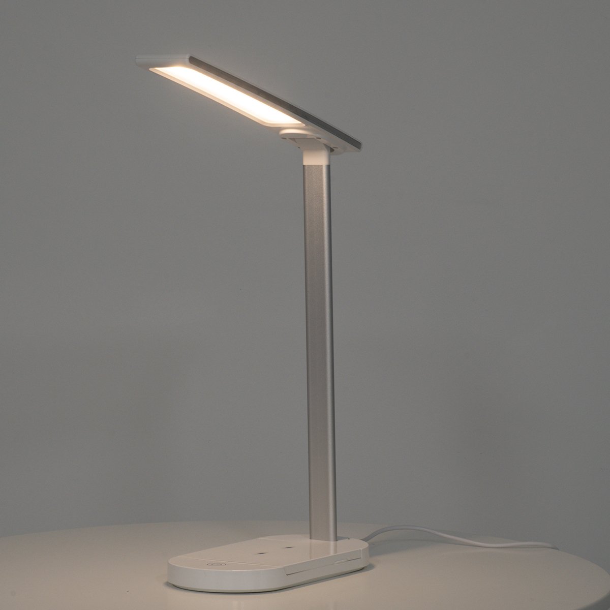 GLOBOSTAR® ONO 76531 Μοντέρνο Επιτραπέζιο Φωτιστικό Γραφείου με Ασύρματη Φόρτιση 10W 2A LED 5W 500lm 180° DC 5V με USB IP20 Ρυθμιζόμενο Λευκό CCT με Αφή 2700K/4500K/6000K Dimmable – Sanan SMD Chip – Λευκό – Μ25 x Π10.5 x Υ35.5cm – 2 Χρόνια Εγγύηση