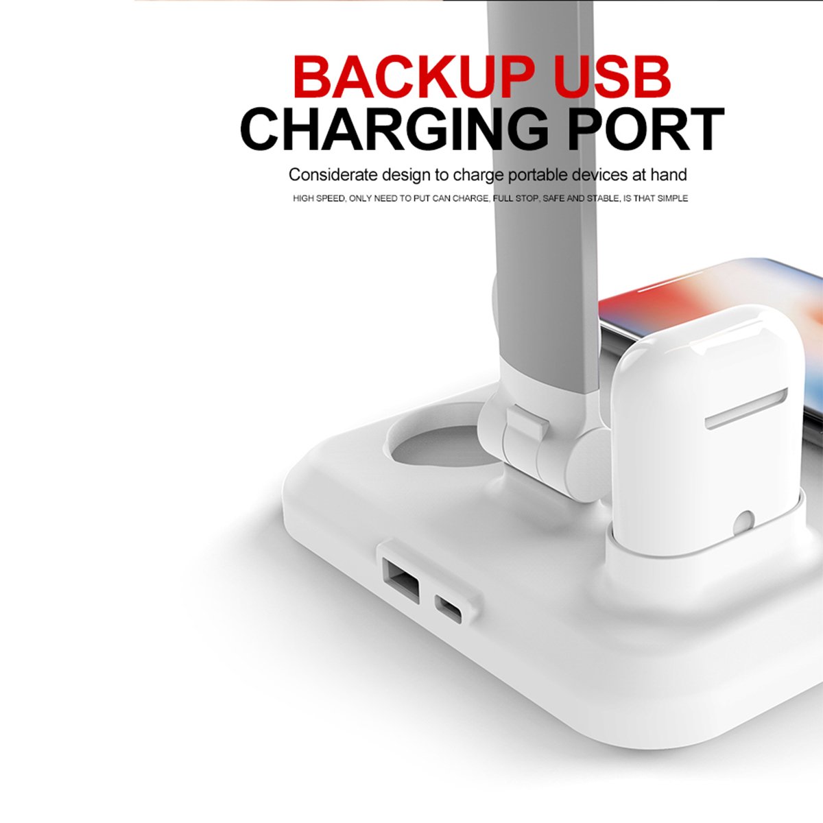GLOBOSTAR® ONO 86101 Μοντέρνο Επιτραπέζιο Φωτιστικό Γραφείου με Ασύρματη Φόρτιση 10W 2A LED 5W 1000lm 90° DC 5V με USB-C IP20 Φυσικό Λευκό 4500K – Sanan SMD Chip – Λευκό – Μ33 x Π14 x Υ63cm – 2 Χρόνια Εγγύηση
