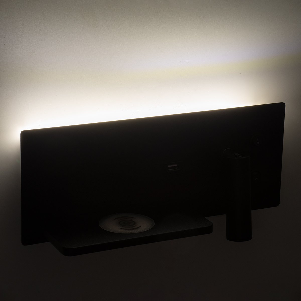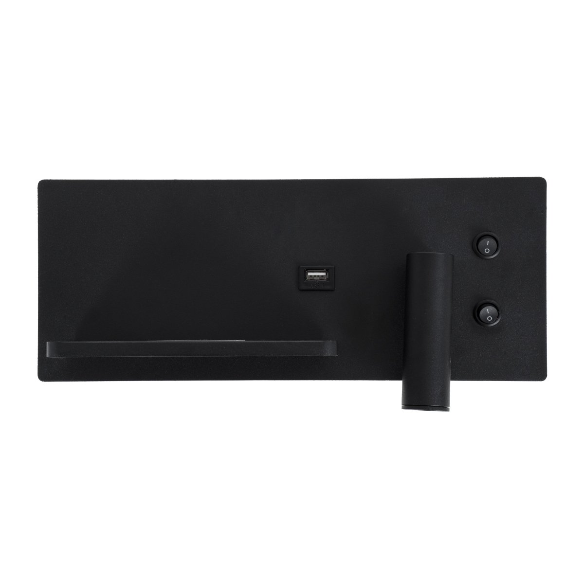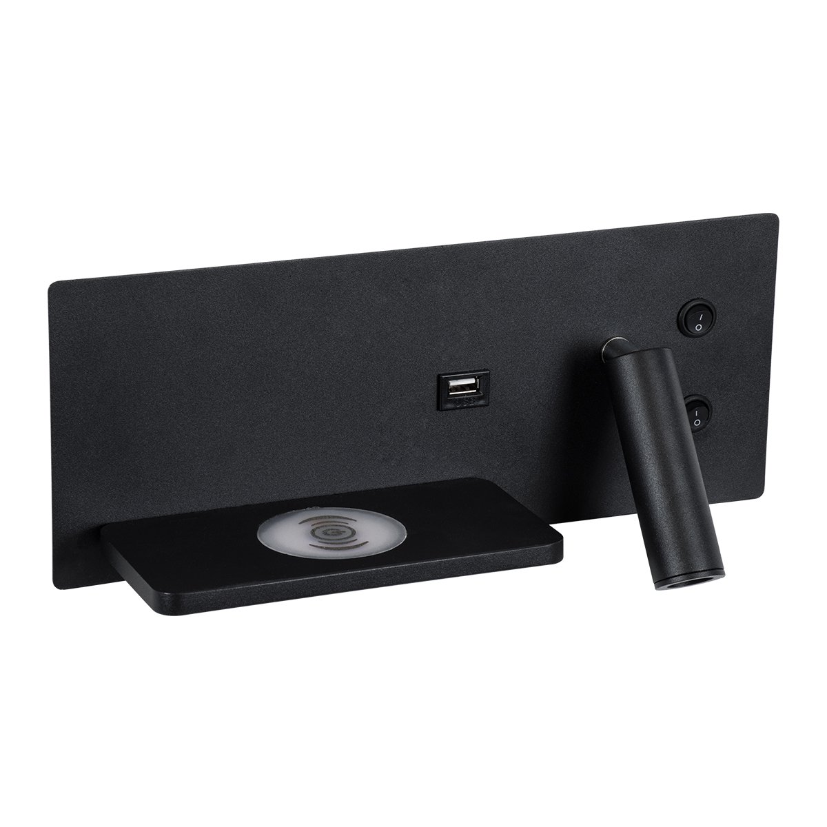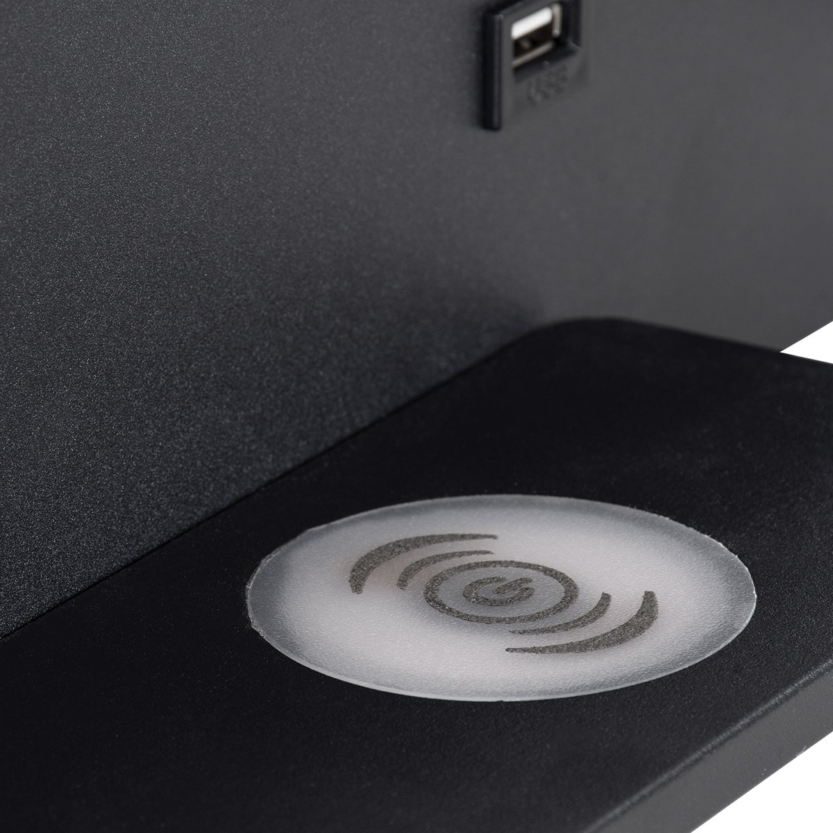 GLOBOSTAR® PALADIN 61351 Μοντέρνο Φωτιστικό Τοίχου – Απλίκα Ξενοδοχείου Reading Light με Φορτιστή USB 3A & Wireless 20W LED 6W 720lm 36° & 360° AC 220-240V IP20 Φυσικό Λευκό 4500K – Bridgelux COB Chip & TÜV SÜD Driver – Μαύρο Ματ – Μ30 x Π11 x Υ12cm – 3 Χρόνια Εγγύηση