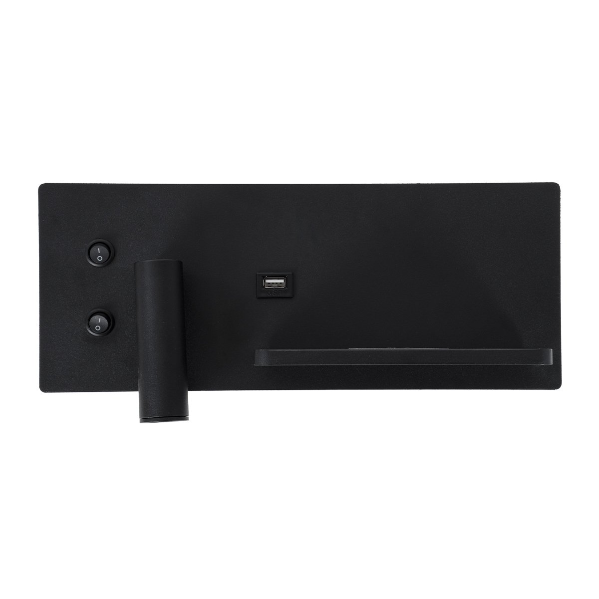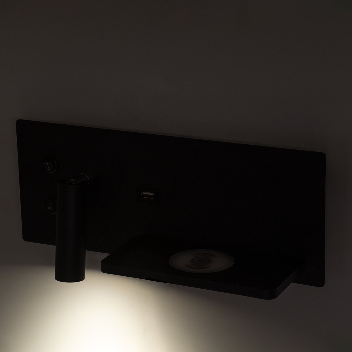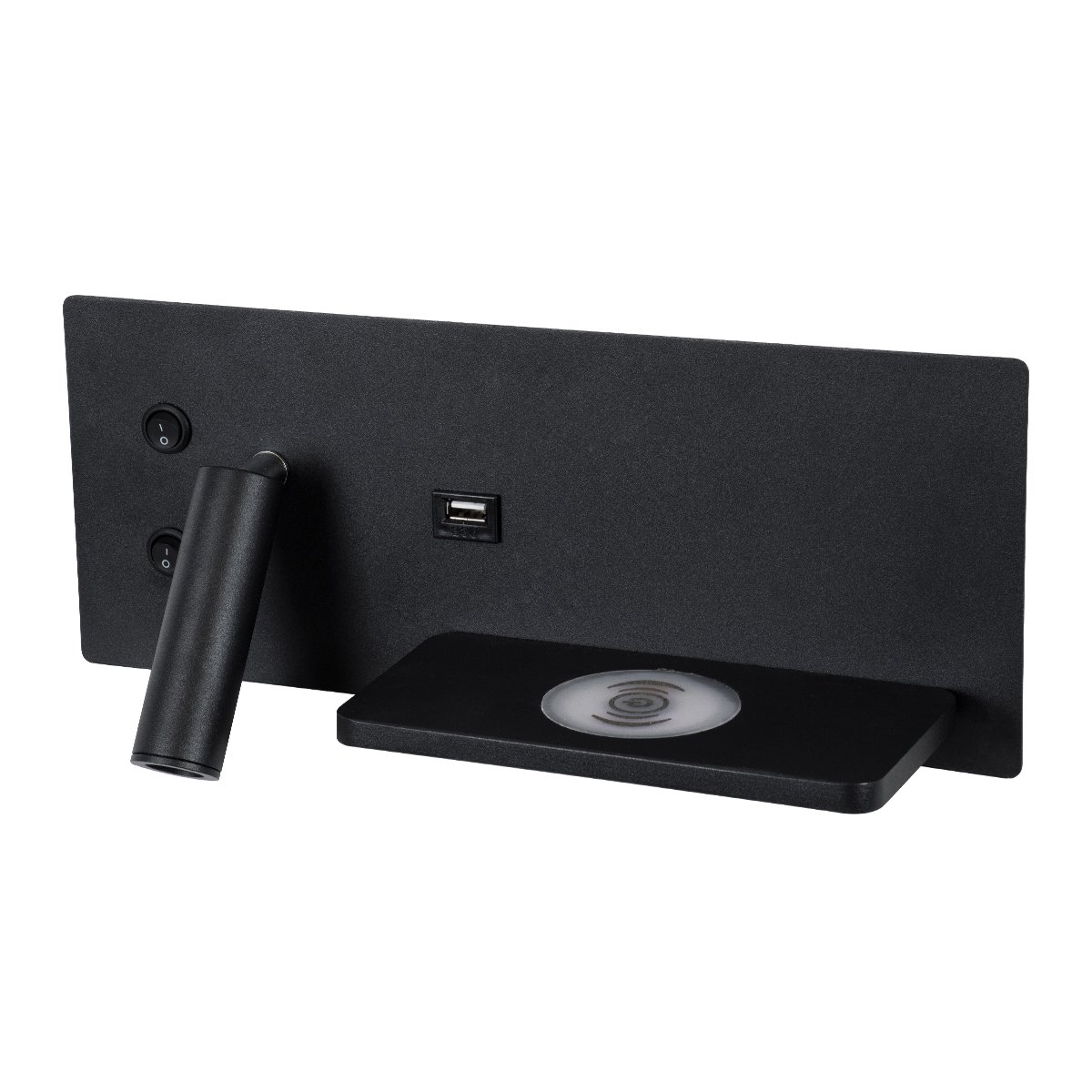 GLOBOSTAR® PALADIN 61352 Μοντέρνο Φωτιστικό Τοίχου – Απλίκα Ξενοδοχείου Reading Light με Φορτιστή USB 3A & Wireless 20W LED 6W 720lm 36° & 360° AC 220-240V IP20 Φυσικό Λευκό 4500K – Bridgelux COB Chip & TÜV SÜD Driver – Μαύρο Ματ – Μ30 x Π11 x Υ12cm – 3 Χρόνια Εγγύηση