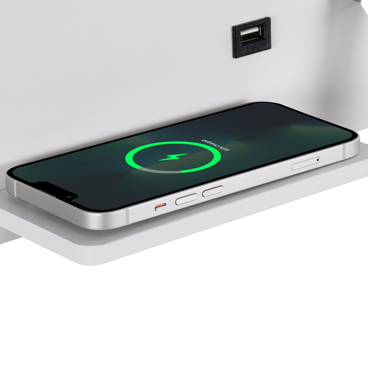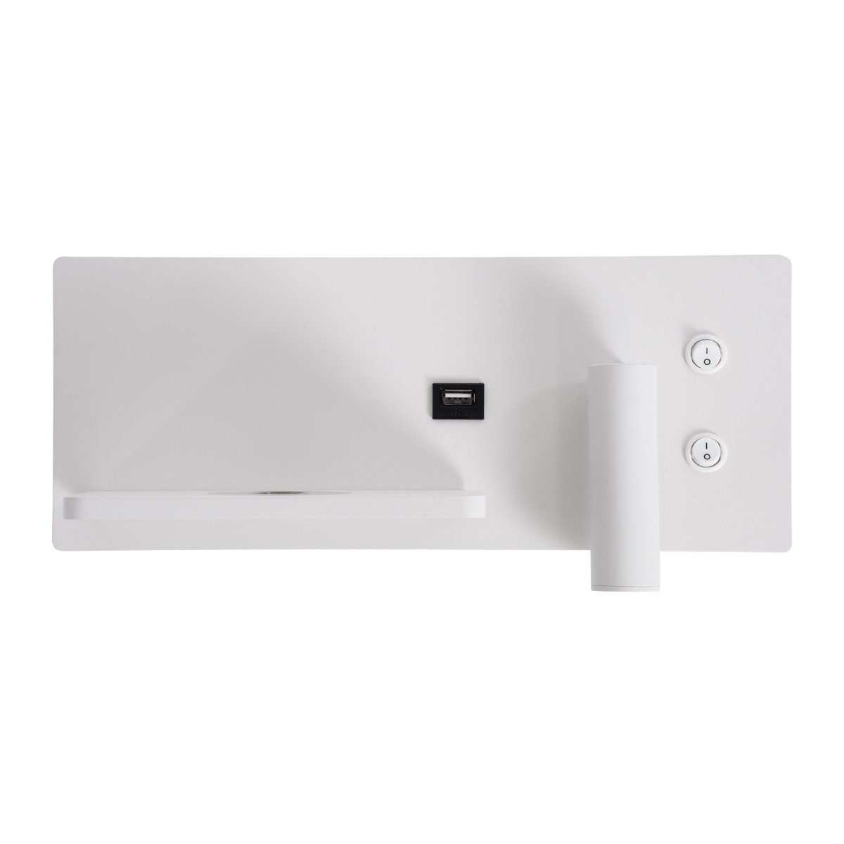 GLOBOSTAR® PALADIN 61353 Μοντέρνο Φωτιστικό Τοίχου – Απλίκα Ξενοδοχείου Reading Light με Φορτιστή USB 3A & Wireless 20W LED 6W 720lm 36° & 360° AC 220-240V IP20 Φυσικό Λευκό 4500K – Bridgelux COB Chip & TÜV SÜD Driver – Λευκό Ματ – Μ30 x Π11 x Υ12cm – 3 Χρόνια Εγγύηση