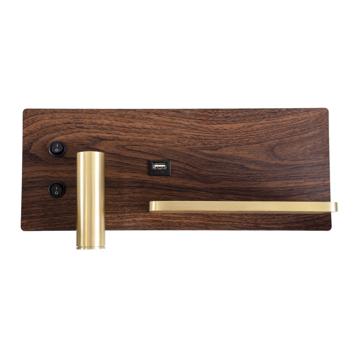 GLOBOSTAR® PALADIN 61362 Μοντέρνο Φωτιστικό Τοίχου – Απλίκα Ξενοδοχείου Reading Light με Φορτιστή USB 3A & Wireless 20W LED 6W 720lm 36° & 360° AC 220-240V IP20 Φυσικό Λευκό 4500K – Bridgelux COB Chip & TÜV SÜD Driver – Καφέ & Χρυσό Βούρτσας – Μ30 x Π11 x Υ12cm – 3 Χρόνια Εγγύηση
