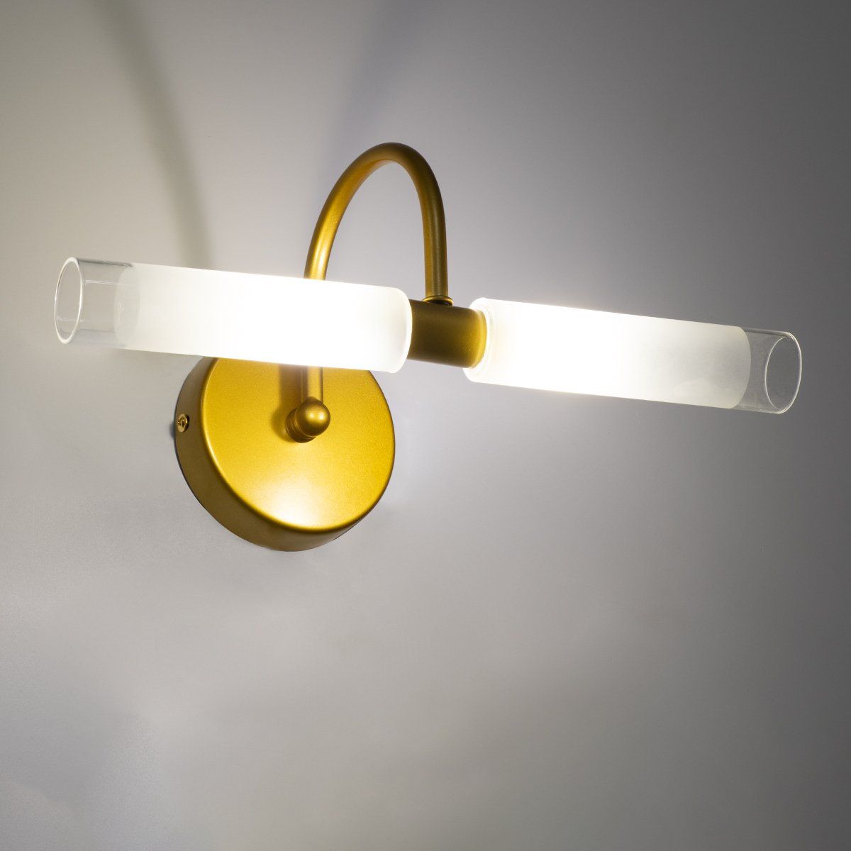 GLOBOSTAR® PAOLA 60417 Μοντέρνο Φωτιστικό Τοίχου – Απλίκα Καθρέπτη Μπάνιου με Ντουί 2 x G9 AC 220-240V IP44 – Χρυσό Βούρτσας & Λευκό – Μ31 x Π16 x Υ15cm