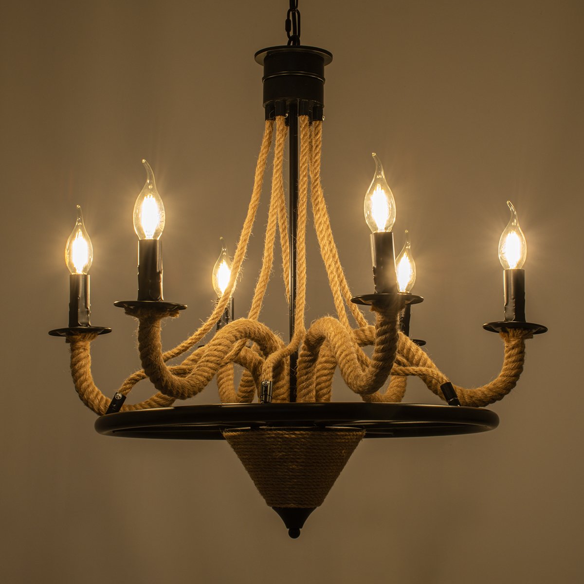 GLOBOSTAR® PENNSYLVANIA 00541 Vintage Κρεμαστό Φωτιστικό Οροφής με Ντουί 6 x E14 AC 220-240V IP20 – Μαύρο & Μπεζ – Μ64 x Π64 x Υ63cm